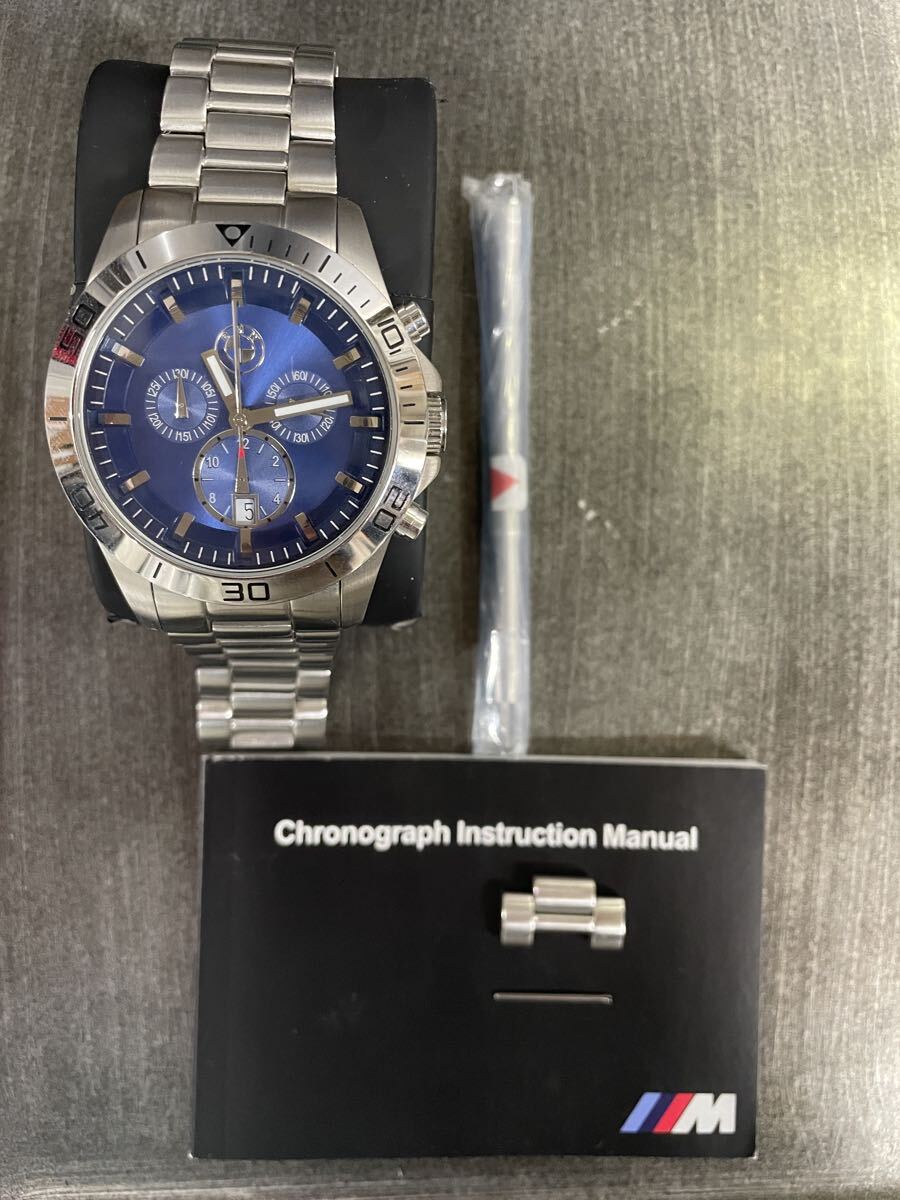 激安スタート! 正規ディーラー品 中古美品 BMW クロノグラフ 腕時計 付属品完備 電池交換必要