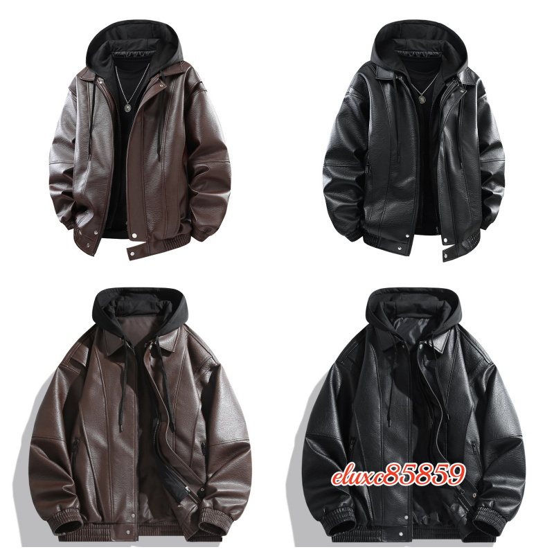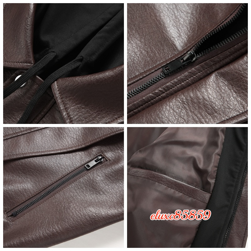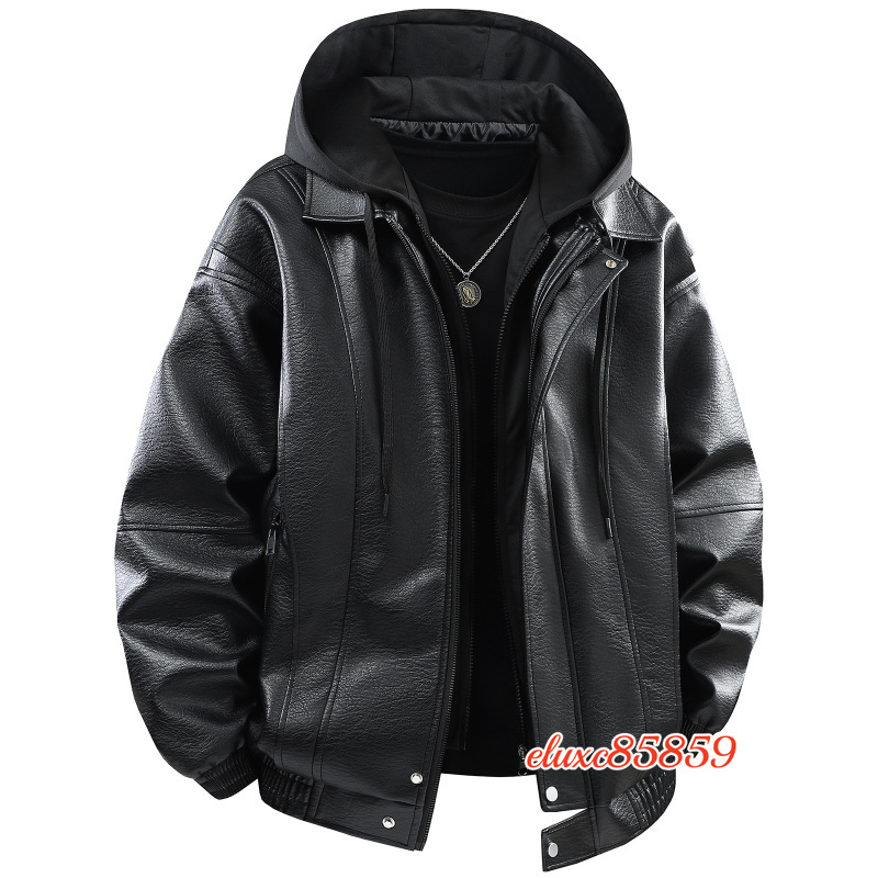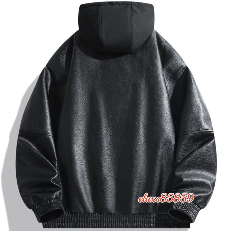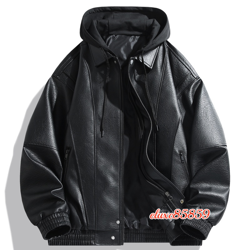 秋冬新品 ライダースジャケット メンズ 2ウェイ フード付き 革ジャン レザージャケット ブルゾン バイクウェア ゆったり M ブラック