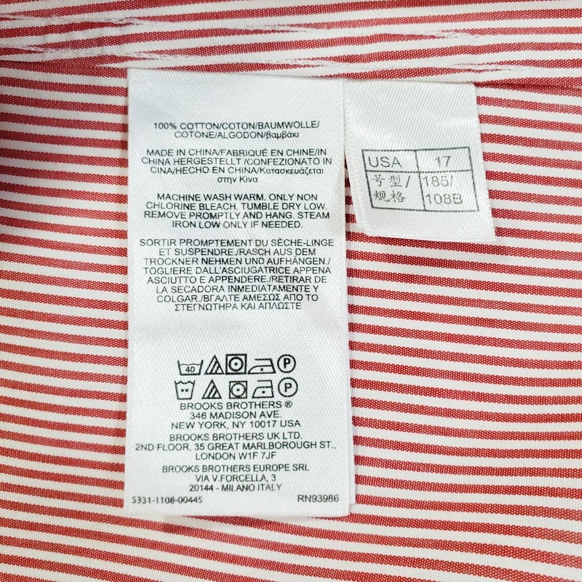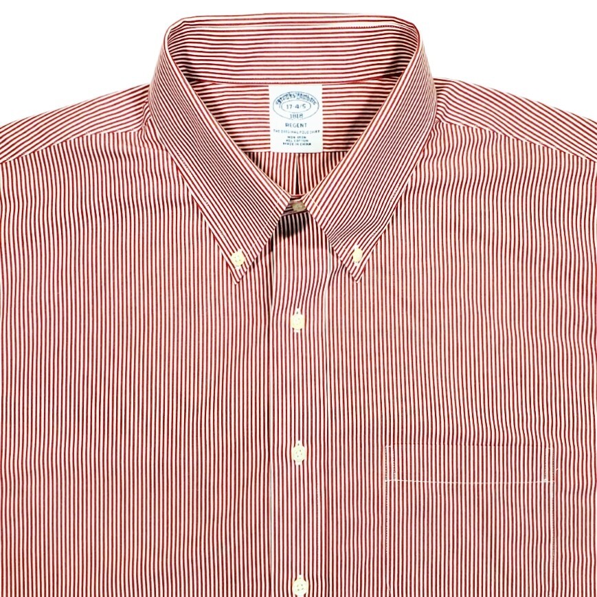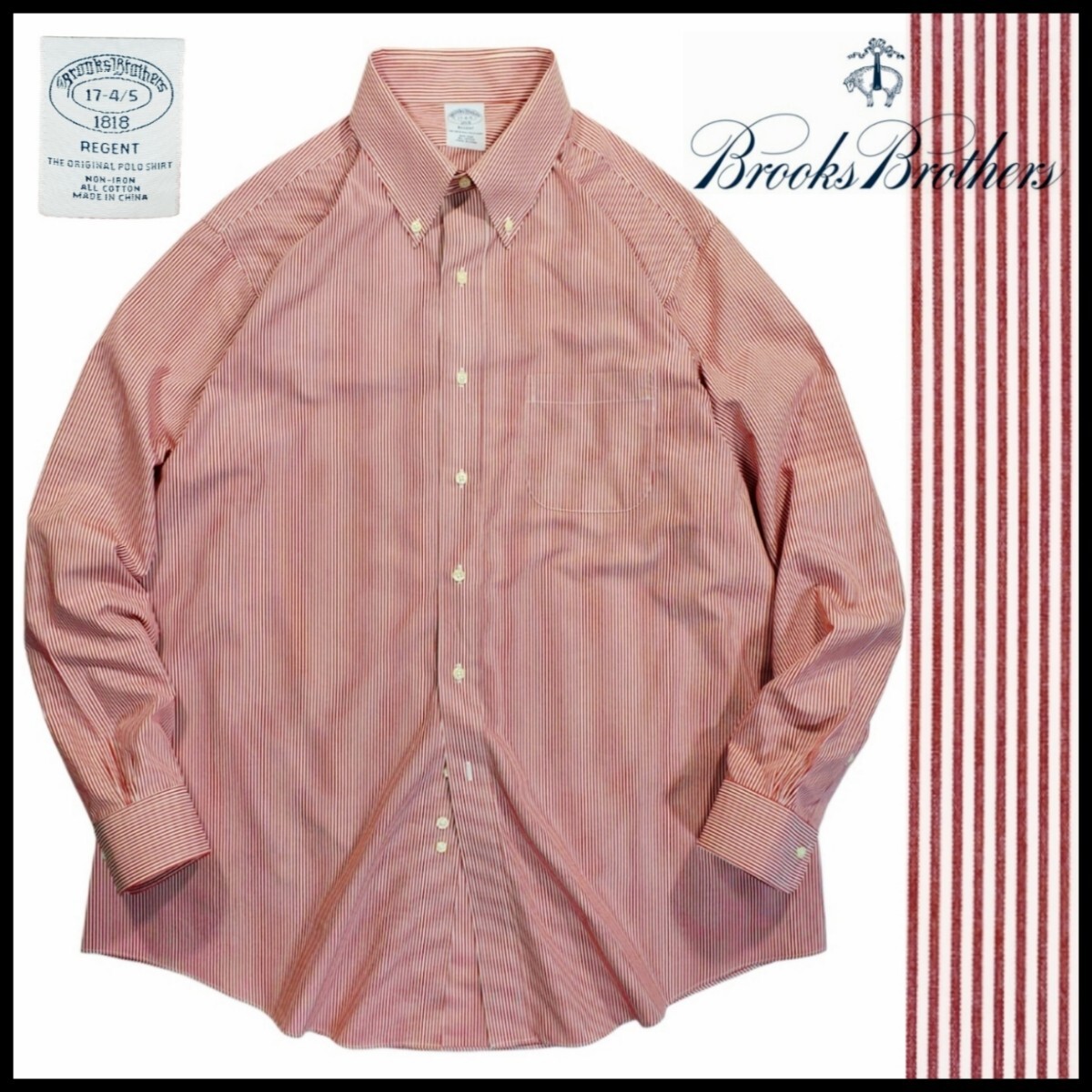 w339/美品 古着 BROOKS BROTHERS 1818 長袖 17- 4/5 ワイシャツ ストライプ柄 ボタンダウン ブルックスブラザーズ 洗濯プレス済 ネコポス可