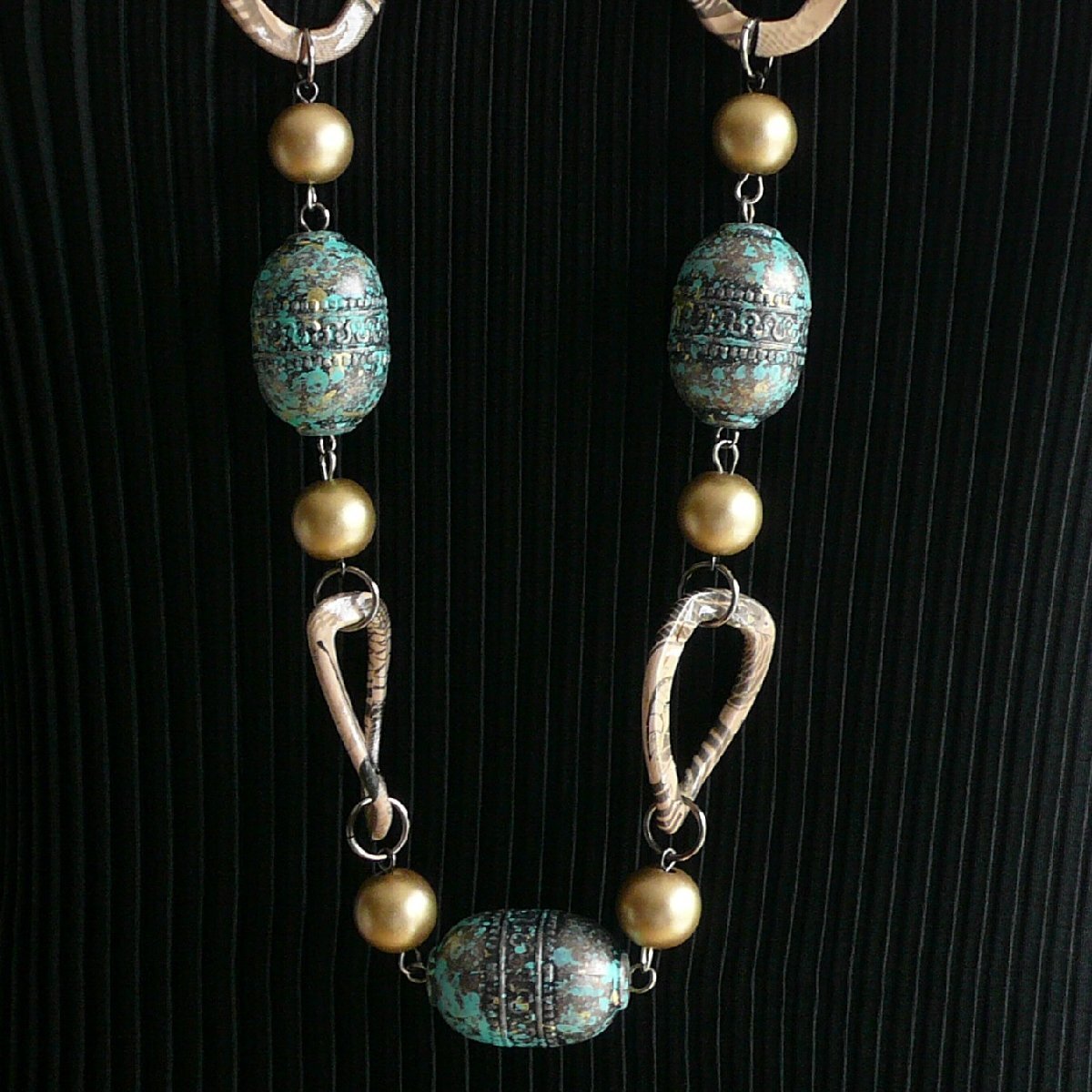 アンティーク調の風合いをまとった個性的なビーズが連なる一点物のような存在感。
