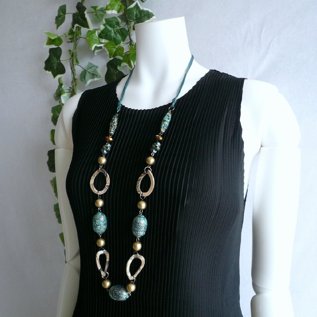 新品 9767 アラビアン風ビーズ ロング ネックレス レディース アクセサリー アンティーク調 レザー風 50代 60代 70代