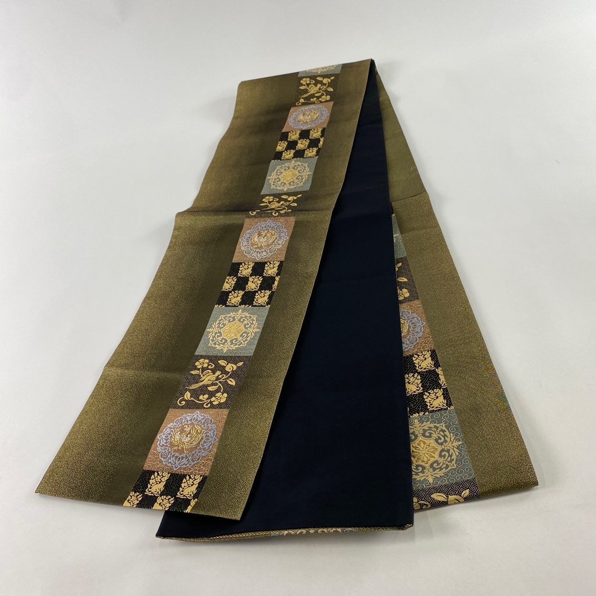 | 袋帯 美品 秀品 鳥 花兎 箔 刺繍 金茶 六通 正絹 【中古】 |