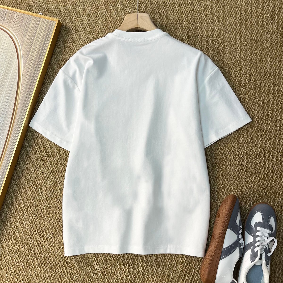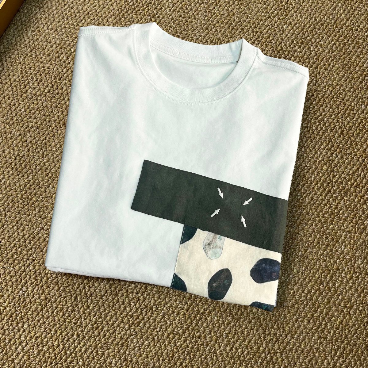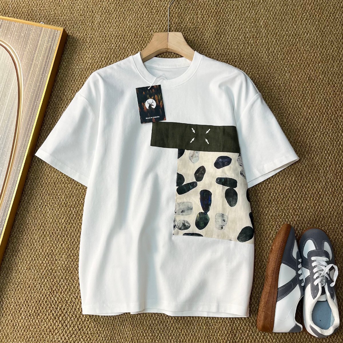 半袖 Tシャツ カナダ製造 綿混 通気 ソフト 丸首 無地 ゆったり 刺繍 シンプル 切り替え 個性 スウェット プルオーバー 普段着 夏 SIZE:L