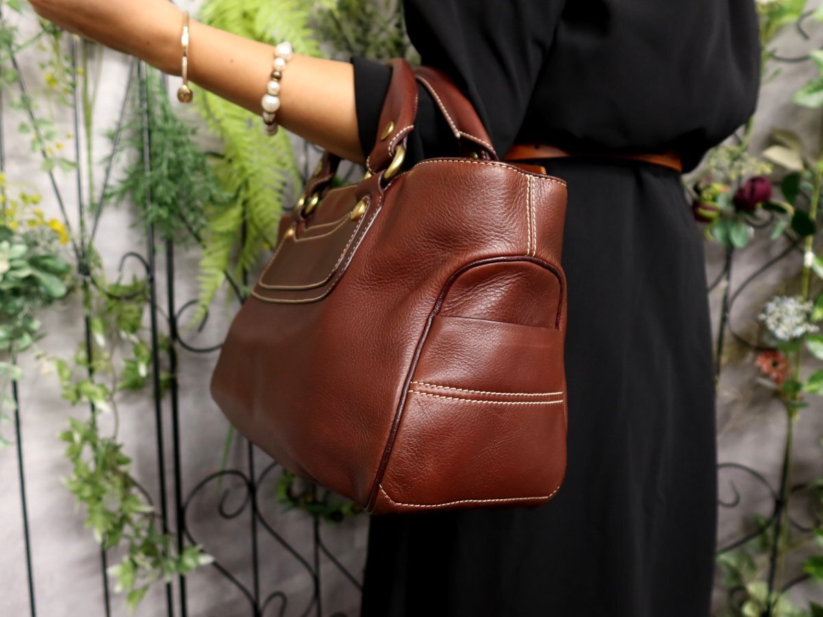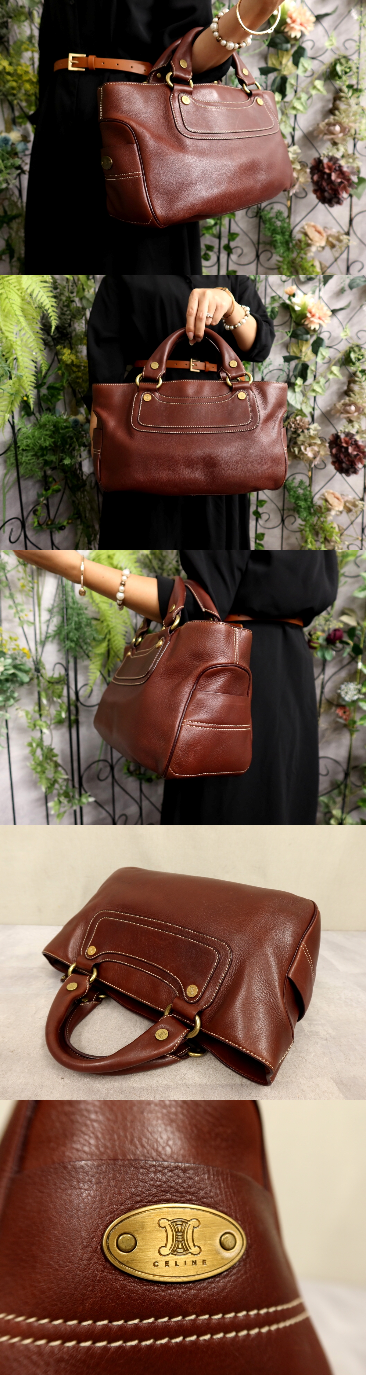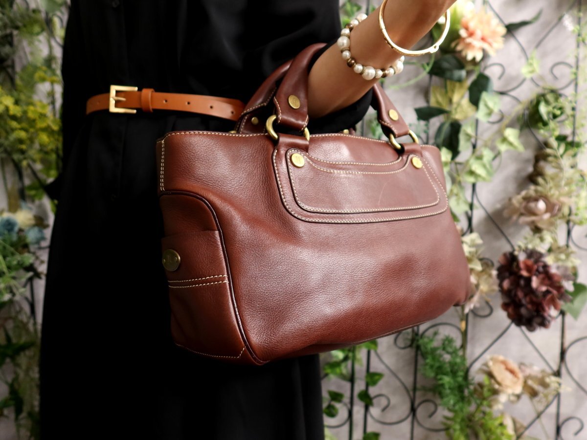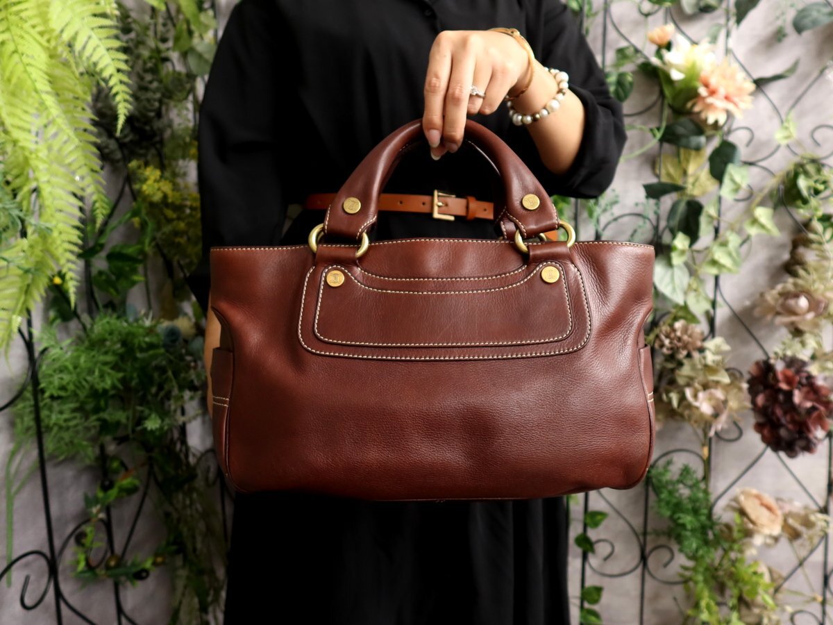 ●超美品●CELINE セリーヌ●ブギーバッグ●カーフ レザー 本革●ハンド バッグ●ブラウン●ゴールド金具●腕掛け●B5 書類 収納●Js61143