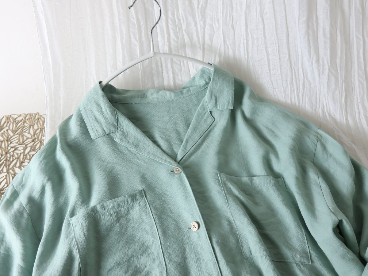 シボ感のあるレーヨンナイロン素材のオープンカラーシャツ。