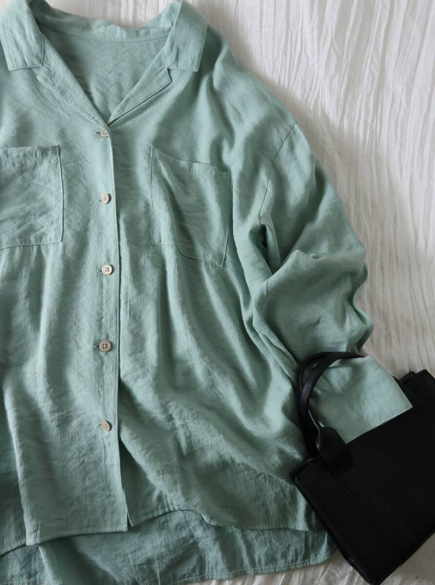 前を開けて羽織りとして着るのもおすすめの一着です。