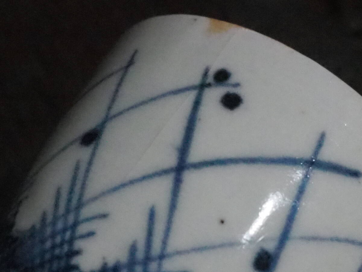 【初期伊万里江戸草格子蕎麦猪口82】染付呉須白磁骨董古民具古美術箪笥膾鉢膳向付古道具アンティークインテリア和食器割烹古民家居酒屋