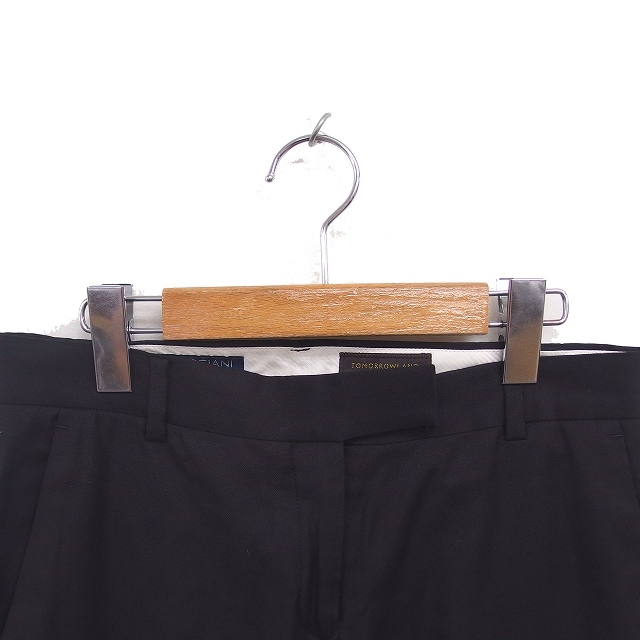 トゥモローランドコレクション TOMORROWLAND collection スラックス テーパード パンツ ロング ウール 厚手 ジップフライ 34 黒 ブラック /TT レディース