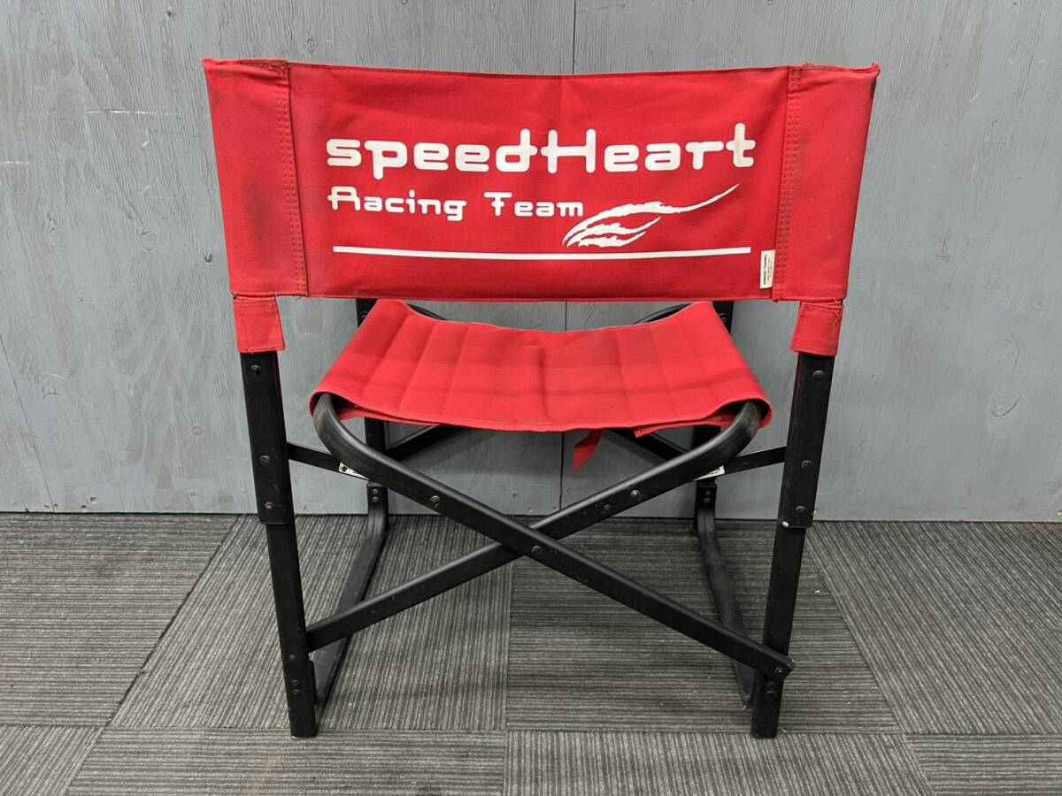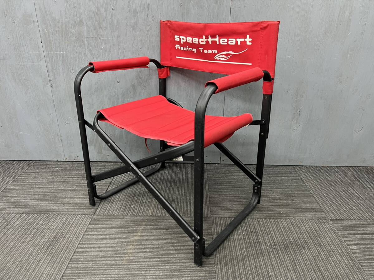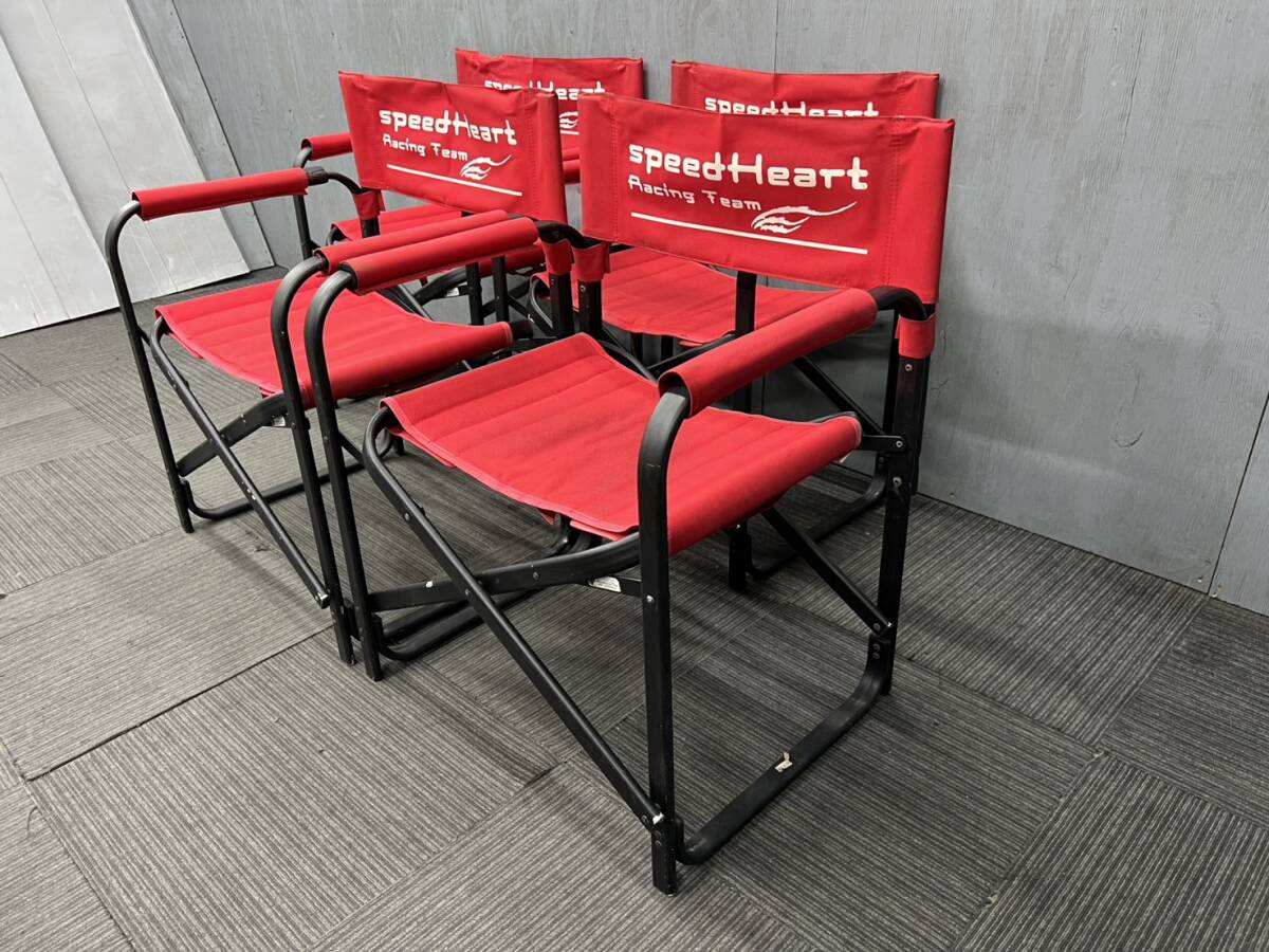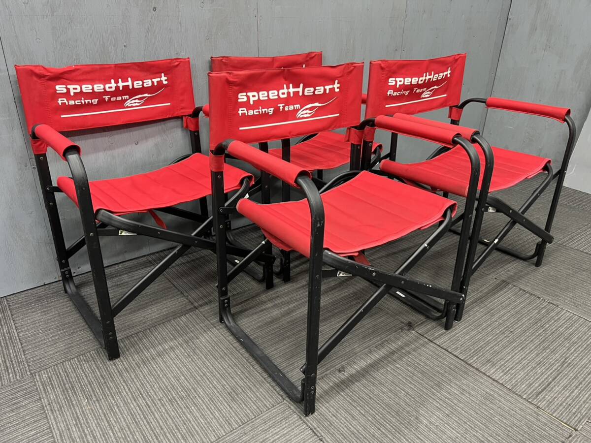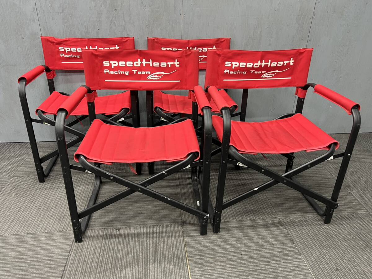 ◆管580◆自社便対応地域あり◆スピードハート◆ディレクターチェア4脚◆アウトドアキャンプ折り畳み椅子 バイクチームロゴ 希少◆レッド系