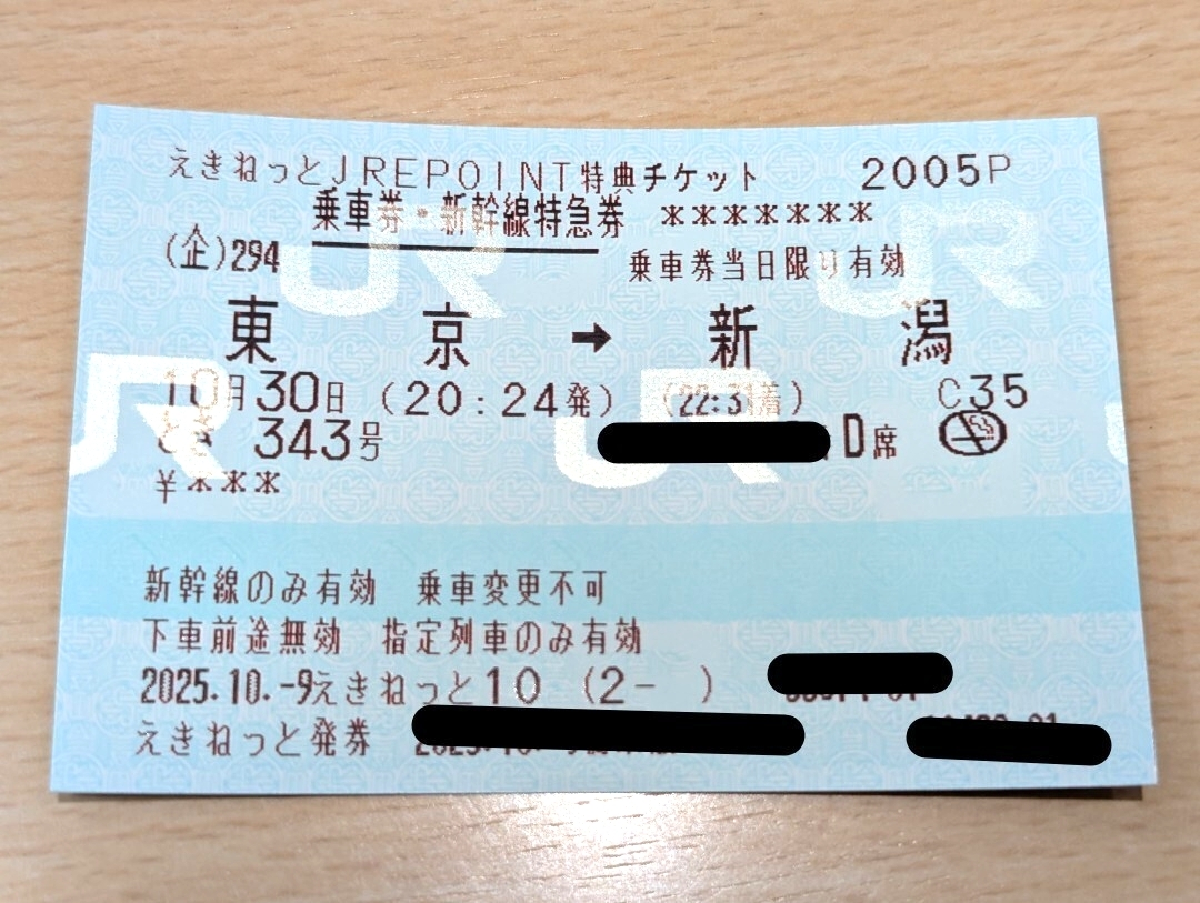 通常は東京新潟の片道で10,760円なのでたいへんお得です。
