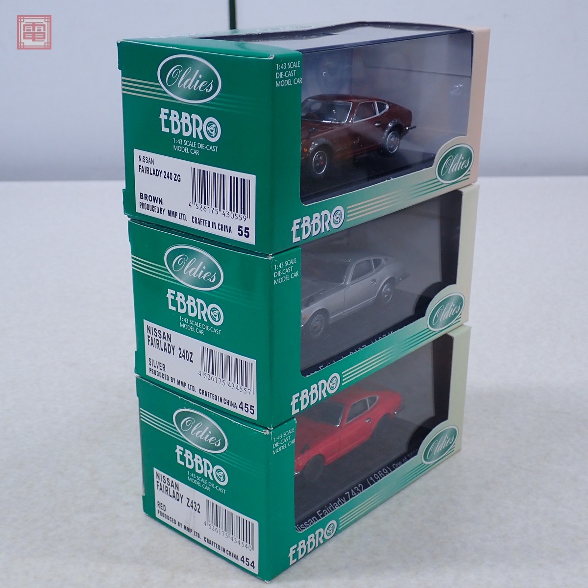 エブロ 1/43 日産 フェアレディ Z432 (1969)レッド/240Z (1971)シルバー/240ZG (1971)ブラウン 計3台set EBBRO NISSAN FAIRLADY ■外箱にスレがあります。 ■ケースにスレ、キズがあります。 ■ボディにスレ、塗装浮きがあります。 ■台座に固定されている為、外さずに行える範囲でのチェックを行っています。 ■写真のものが全てです。付属物の有無や状態については写真からご判断ください。 ■付属物については細かいチェックはしておりませんので、万が一、欠品があったり余計な物が入っていたとしてもご了承ください。 ■商品到着後、当店の保証期間中は、商品及び箱や取説、付属品などを1つでも廃棄や破損をしないようにお願い致します。廃棄や破損をした場合、商品に問題があった場合でも対応や返金などの対処ができなくなります。 ■商品によりますが、発売されてから10年以上経過している中古品である事をご理解頂いた上でご入札をお願い致します。なお、新品や美品、また特記事項がある場合は別途明記します。 | |||