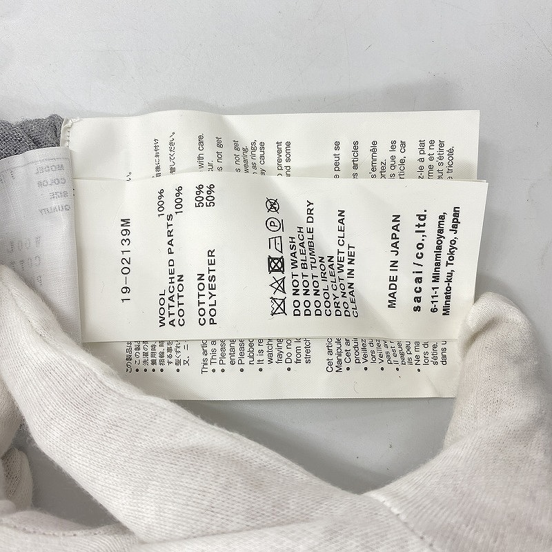 目立つような大きなキズ・汚れは無く、綺麗な印象です。左腕とフーディー部分はコットン100%のスウェット素材、そのほかはウール100%のニットです。商品詳細は画像でご確認ください。