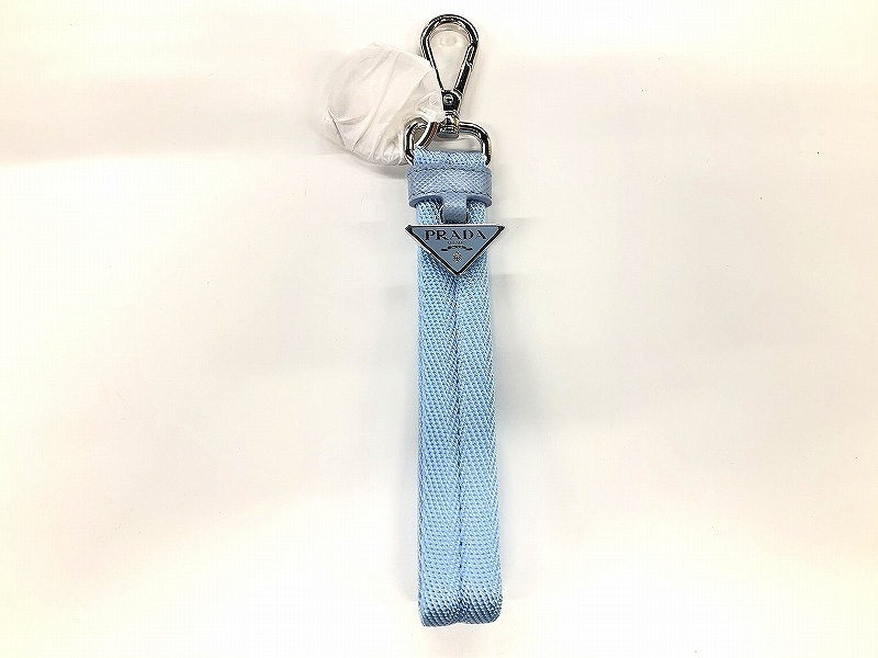 期間限定セール 【未使用】 プラダ PRADA PORTACHIAVI TESSUTO トライアングルロゴプレートキーリングキーホルダー ブルー