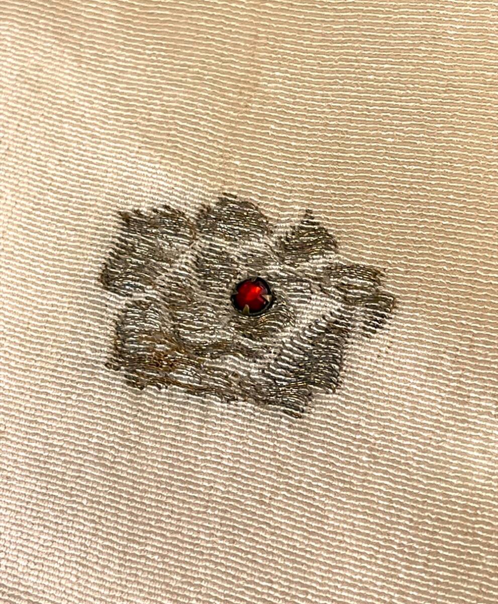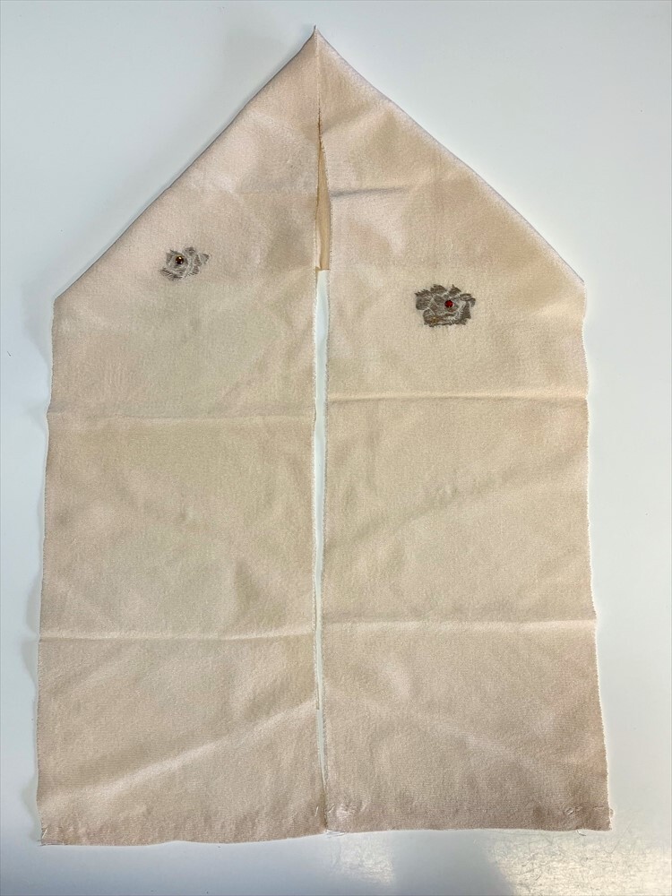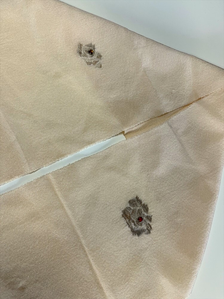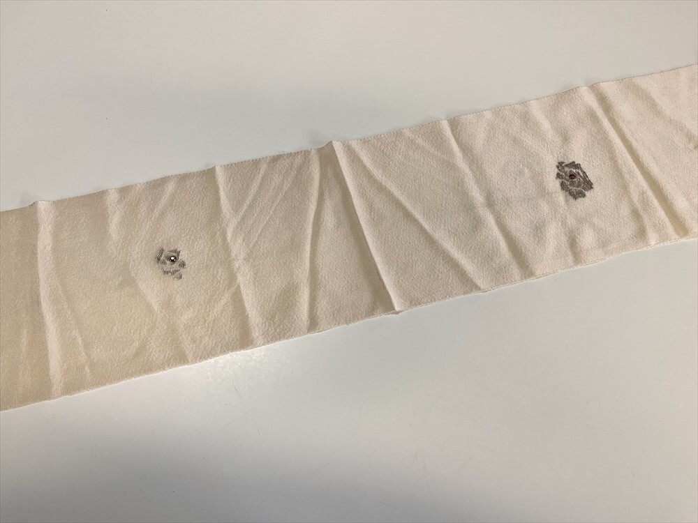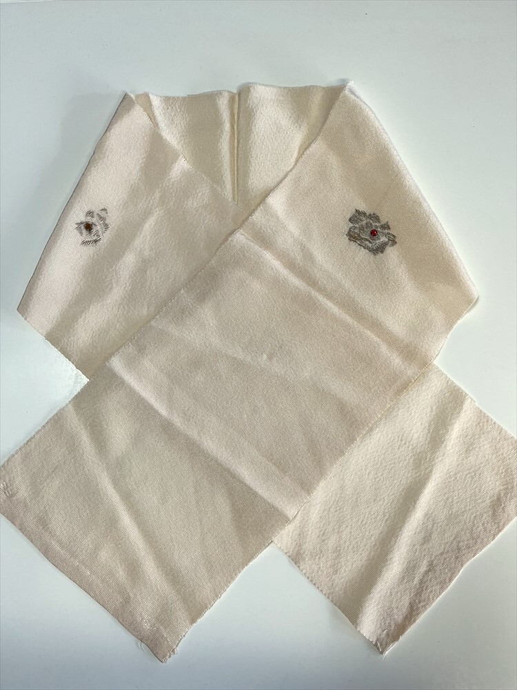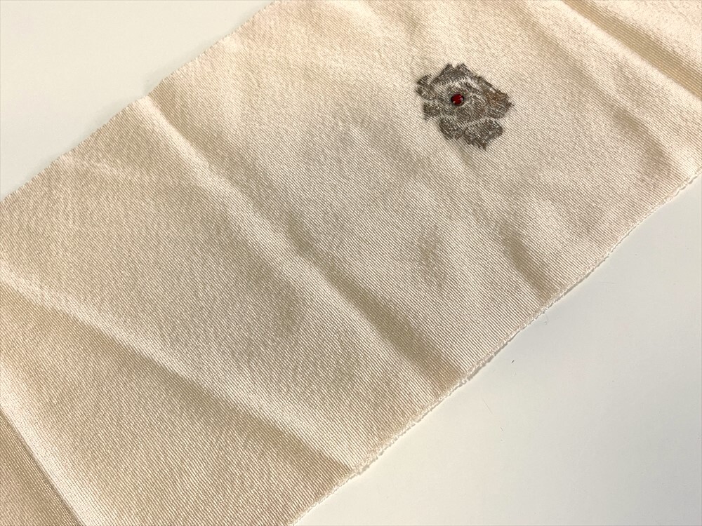 花とら●リサイクル和装小物 半衿 半襟 薄ベージュ 薔薇 素材 細工用にも    250920