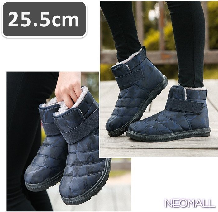 ユニセックス スノーシューズ 【870】 25.5cm 迷彩ネイビー ムートンブーツ スニーカー ウィンターブーツ 裏起毛 防水 防寒 防滑 冬用靴