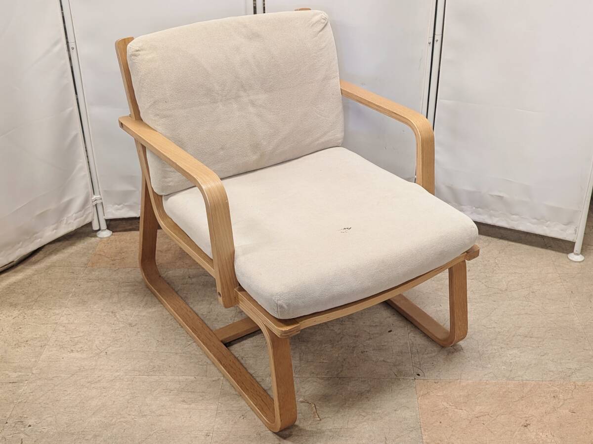 ▽無印良品 MUJI リビングでもダイニングでもつかえるソファチェア・オーク材 アーム付き 1人掛け 1P