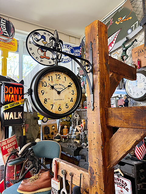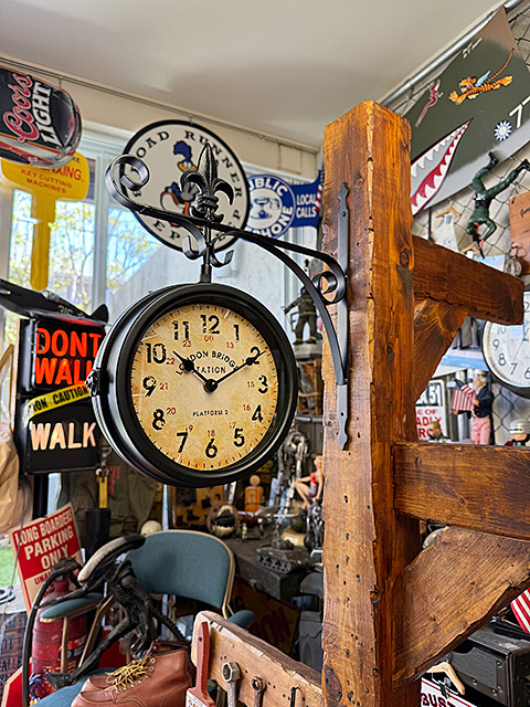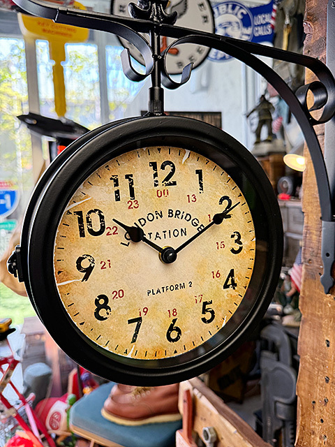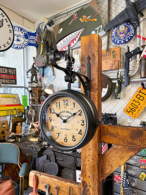 あっちからも、こっちからも時計が見れちゃう、「両面タイプ」の壁掛け時計、ステーションクロックです。