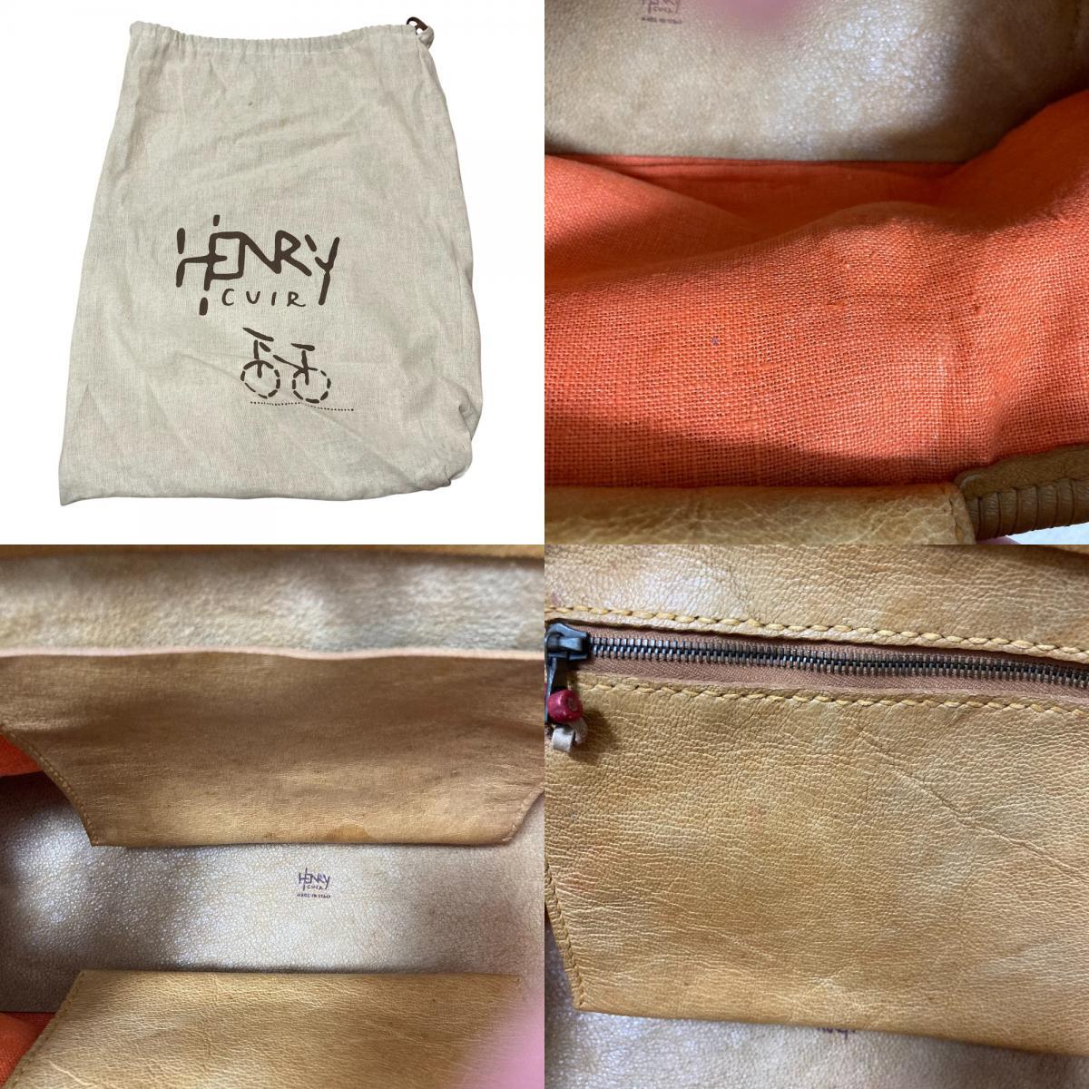 HENRY CUIR アンリークイール レザー トートバッグ ハンドバッグ ブラウンベージュ