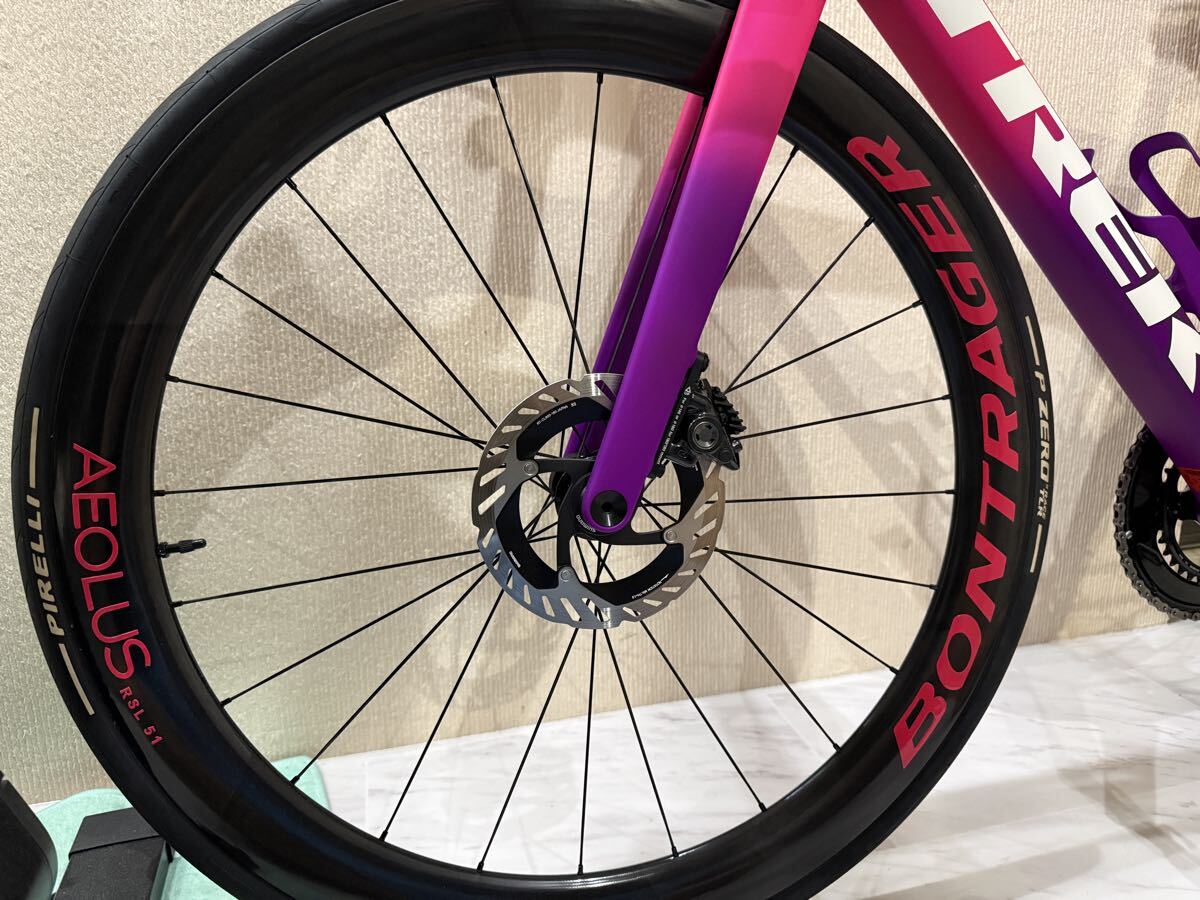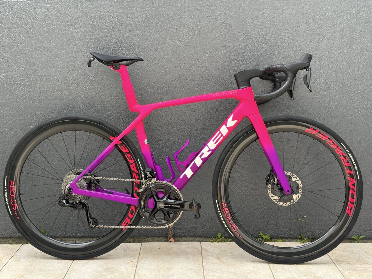 正規販売店にて新車オーダーしましたTREK MADONE gen8 SLR9、サイズはMサイズになります。project oneにてオーダー時にセラミックスピードのBBを選択しております。
