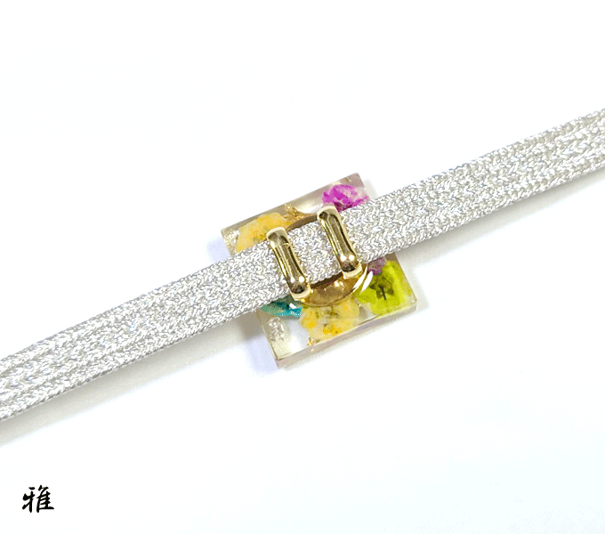 【 雅 】 三分紐専用♪水中花*美しいミックスフラワー押し花 帯留め