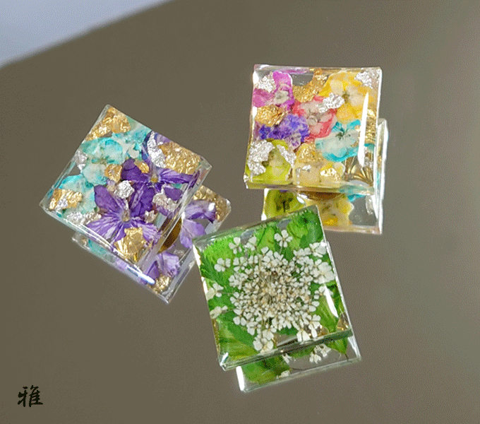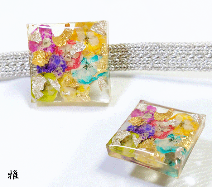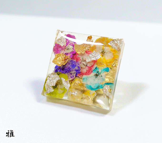 クリアな中に色とりどりの美しい本物のお花(ドライフラワー)が閉じ込められた