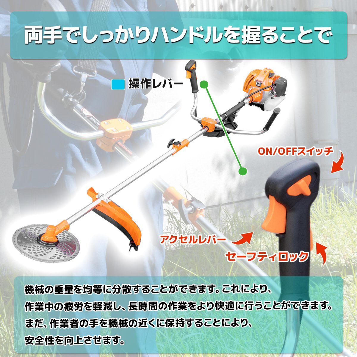 【送料無料】草刈り機 草刈機 刈払機 エンジン ガソリン 5種類のカッター付属 強力52cc 2分割式 2サイクル ハイパワー 肩掛け 刈払い機