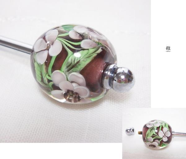 【雅】取り外しが出来る♪しっとり色。○とんぼ玉ネジ式かんざし