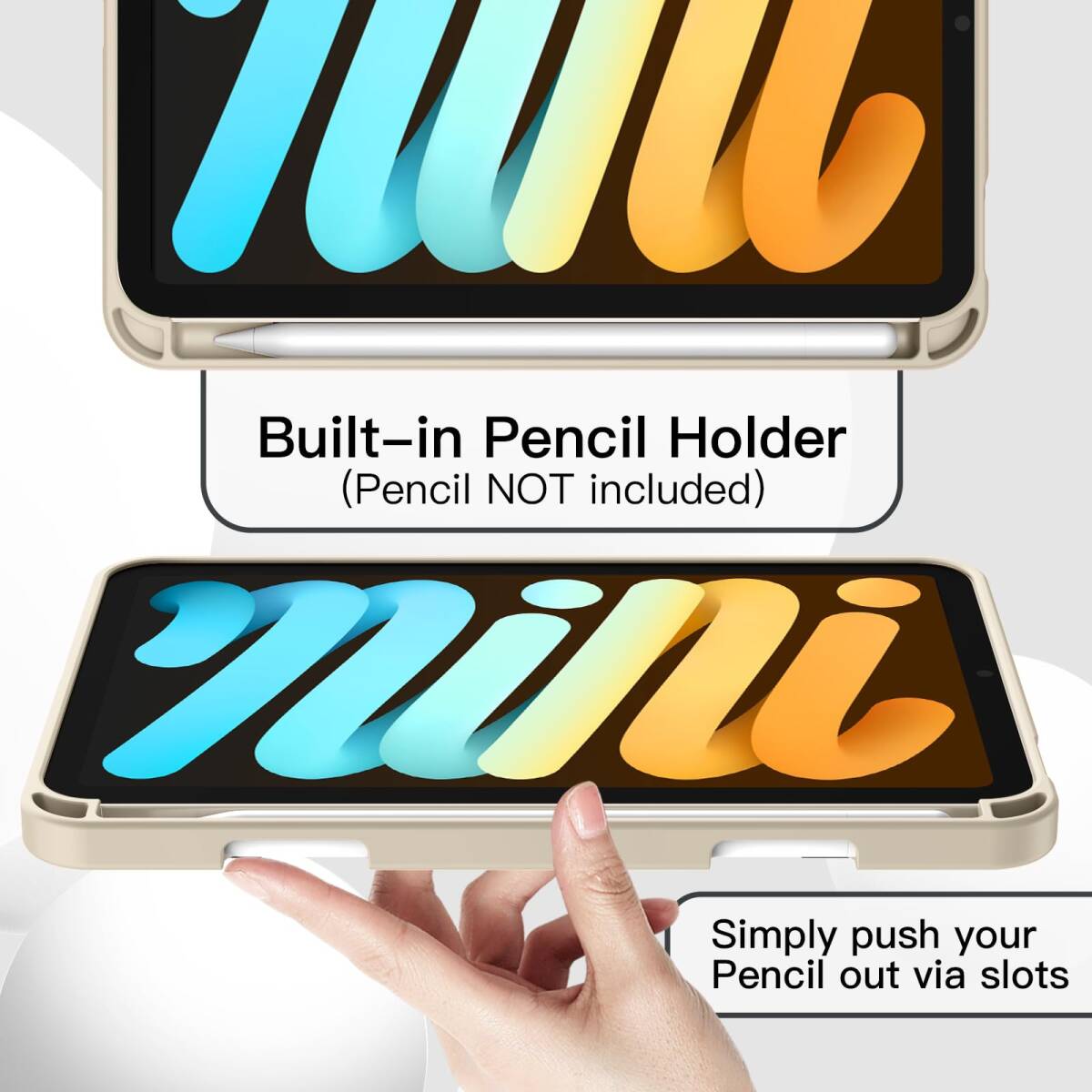 JETech iPad mini (A17 Pro 2024 モデル、第7世代) / mini6 ケース (8.3インチ、2021モデル、第6世代)用 Pencilホルダー付き ソフトTPUバック スリム保護カバー オートウェイクアップ/スリープ機能付き (スターライト)