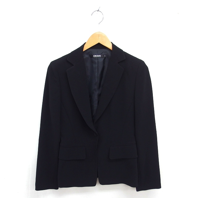 ダナキャランニューヨーク DKNY テーラード ジャケット アウター 肩パッド 総裏地 無地 シンプル 4 黒 ブラック /TT レディース