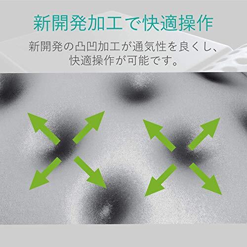伸縮性ポリウレタン生地を使用し、マウスが滑りすぎず静かな操作感です。