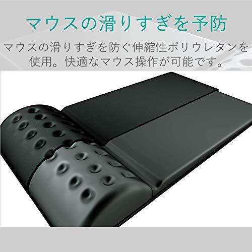 手首の疲労を軽減するリストレスト一体型のマウスパッドです。低反発ポリウレタンを採用したリストレスト部が手首に優しくフィットし、動きに応じて荷重を吸収・分散します。新開発の凹凸(ディンプル)加工により、通気性と快適性がいちだんと向上しています。