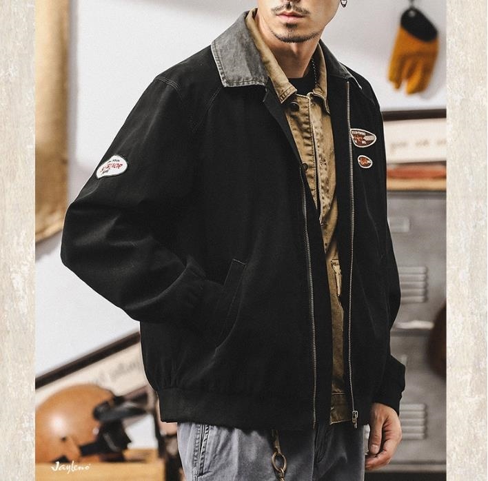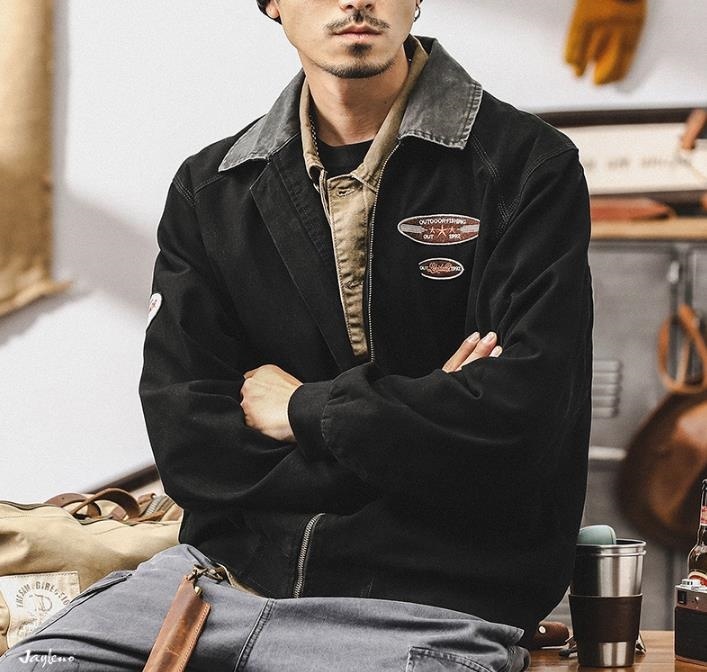 ワークジャケット ブルゾン ジャケット メンズファッション*新品 カーゴジャケット アメカジ ジャンパー 春秋服 カジュアル【J202408301650】黒 L
