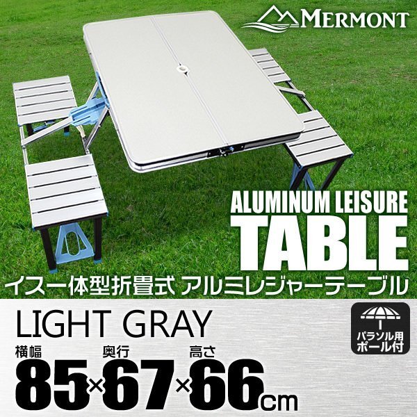 MERMONT - メルモント - アルミレジャーテーブル 折りたたみ収納式 イス一体型 天板防水加工 パラソル用ホール付き |