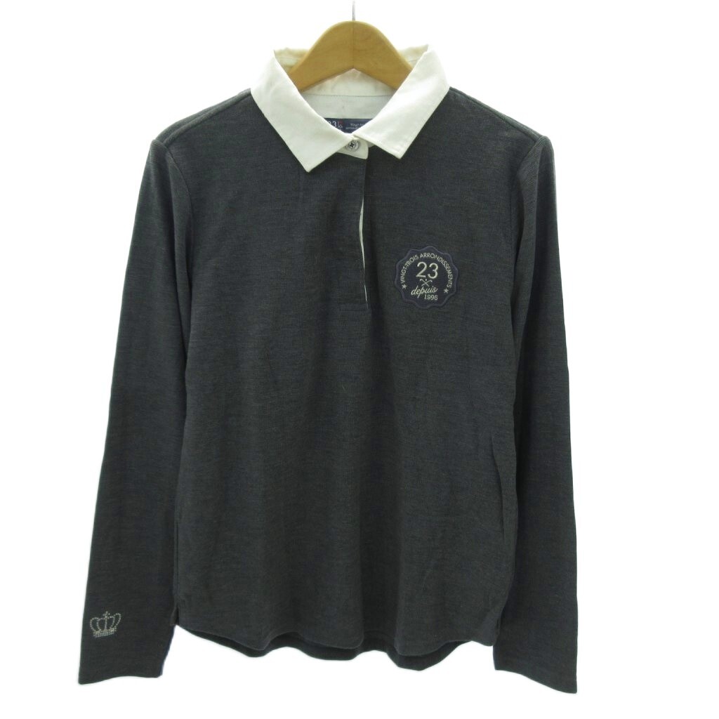 23区 オンワード樫山 GOLF ポロシャツ ロゴ ワッペン 長袖 1 グレー 1005 ■YHS5 レディース