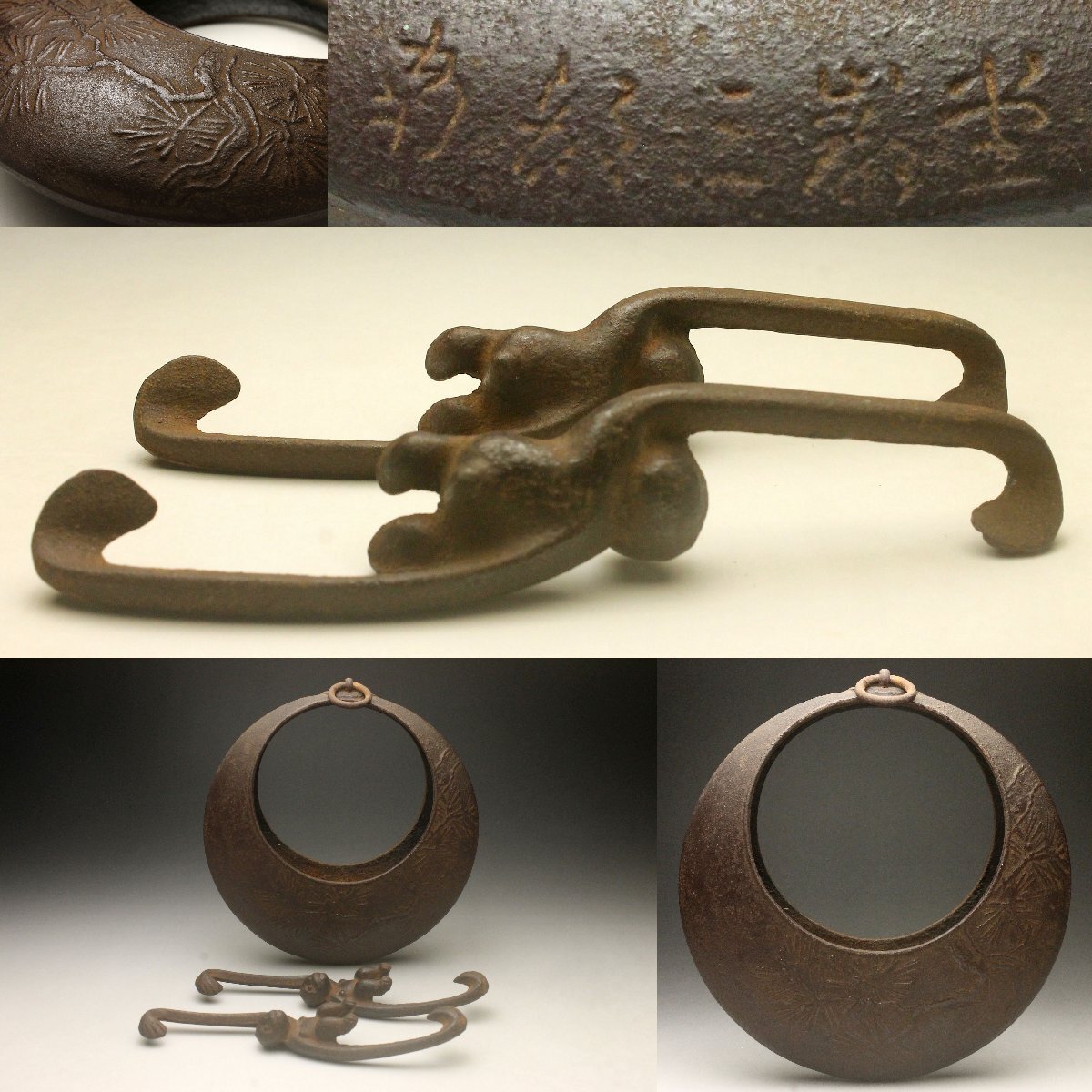 【余韻】 南部鉄器 南部三厳堂 釣花器 猿フック 2点セット 猿手★無傷美品<同梱可>