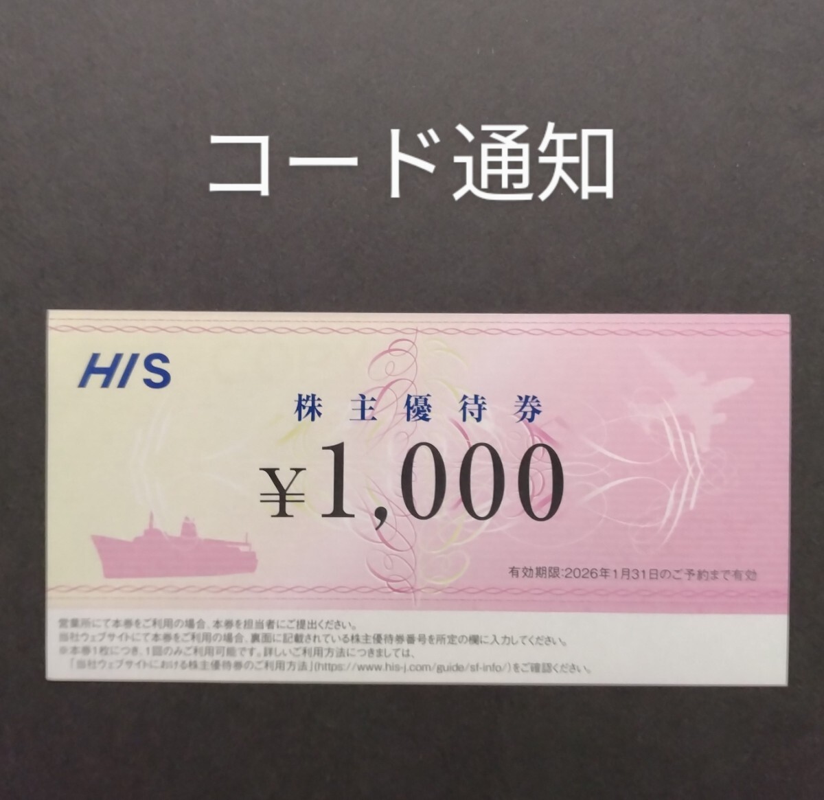 HIS 株主優待券 1000円割引券 1枚