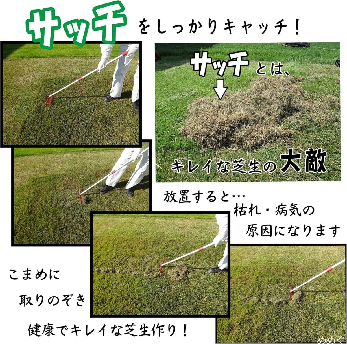 芝生が長いとサッチが取れない場合もありますので、25mm以下に芝刈りされてからご使用される事をお勧め致します。