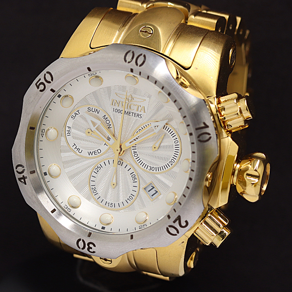 1円 保/箱付 稼働 良品 インビクタ No.23893 クロノグラフ QZ シルバー文字盤 メンズ腕時計 0583000 9ERT MST