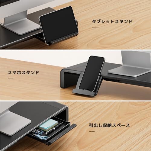 Klearlook モニター台 机上台 耐荷重50kg以内 折りたたみ式 三段階の幅調整可能 ノートパソコンスタンド モニタースタンド デスクスタンド キーボード収納 引き出し スマホ・タブレットトレー -ブラック