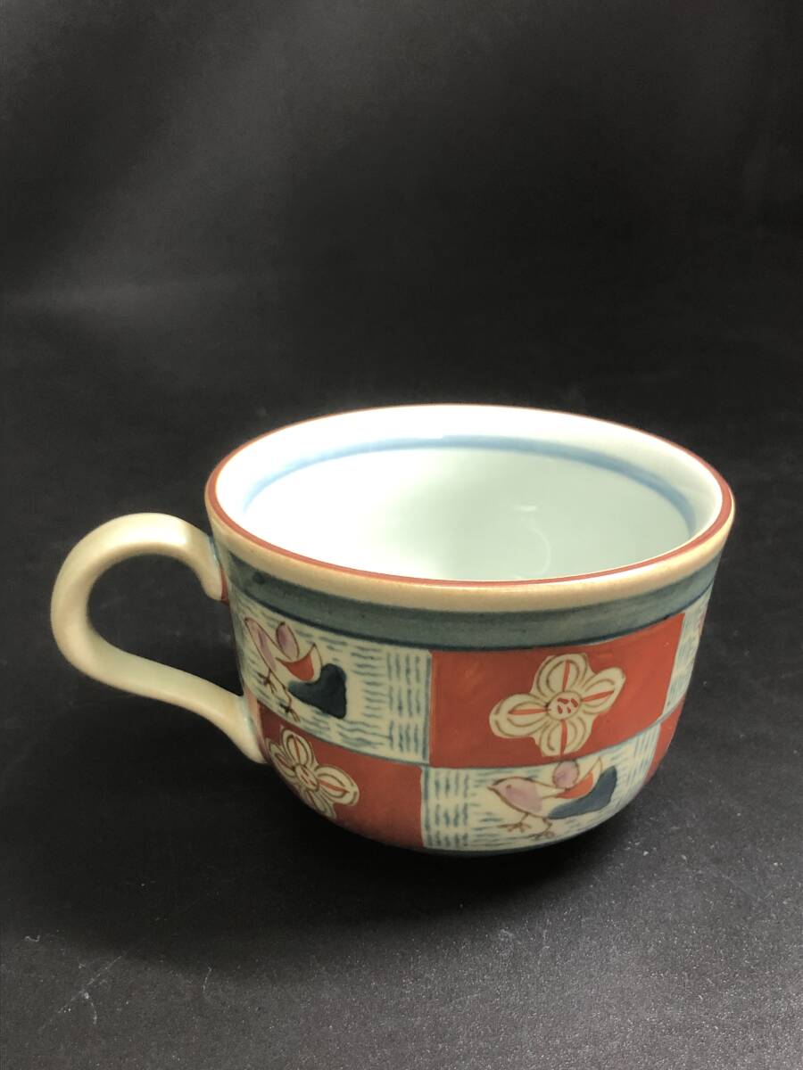 【未使用保管品】有田焼 清山窯 カップ&ソーサー ペア 茜千鳥 色柄違い コーヒーカップ ティーカップ