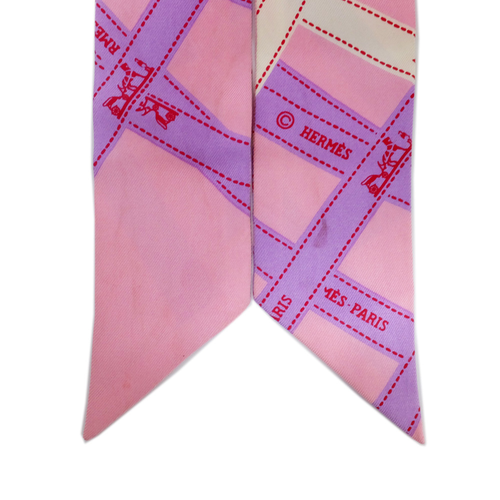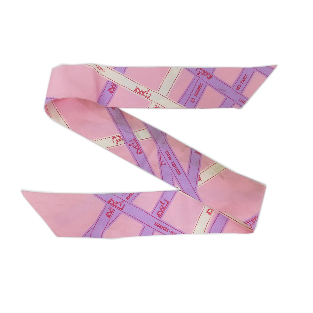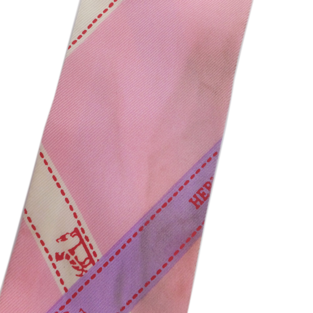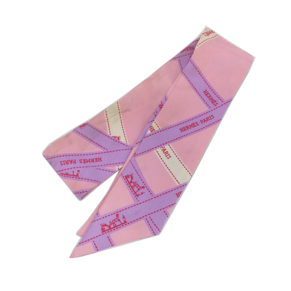 【天白】エルメス ツイリー リボン ボルデュック柄 ピンク パープル スカーフ ファッション アクセサリー シルク100%