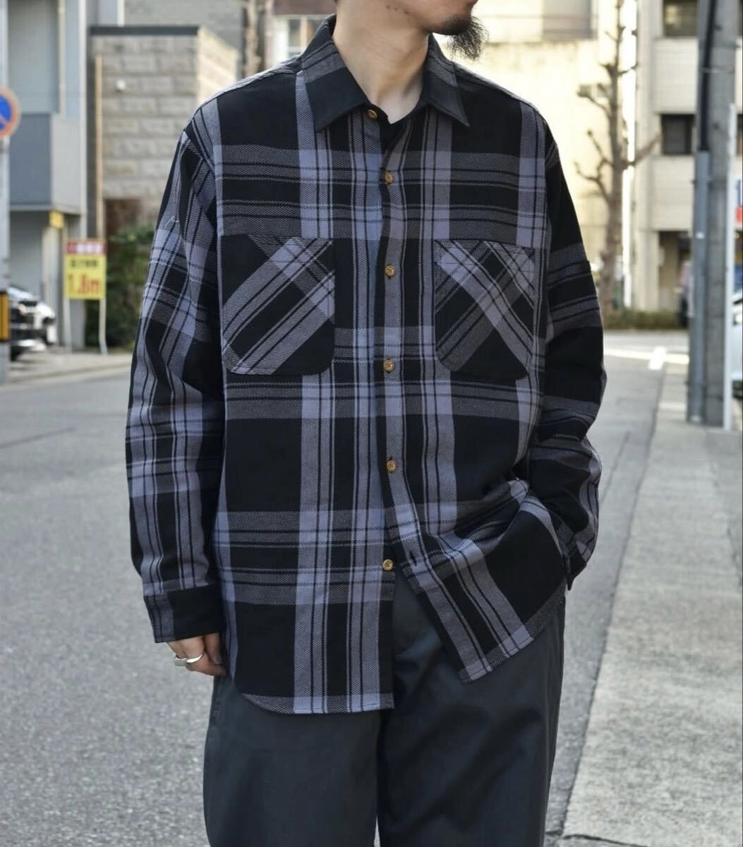 70S当時のBIG MACには存在しない、彩度の高いカラーをセレクトし配色した大判のタータンチェック。