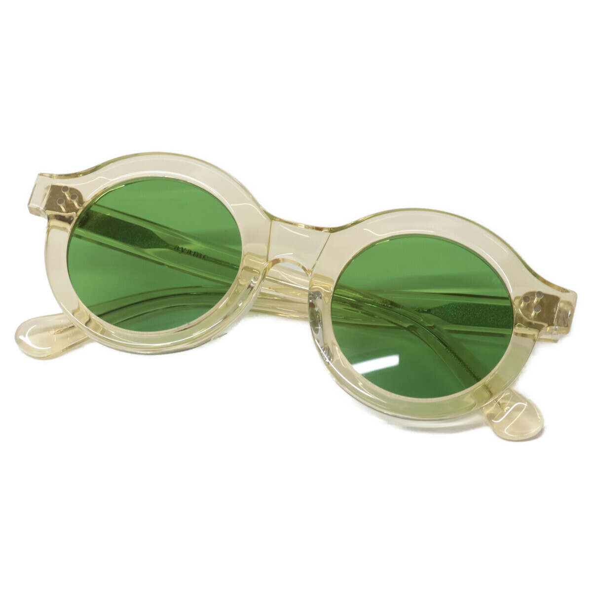 美品 ayame アヤメ AROUND CGO アラウンド ラウンドシェイプ サングラス 47□24 クリスタルゴールド/ライムグリーン