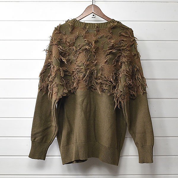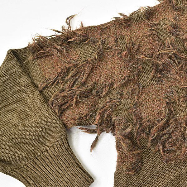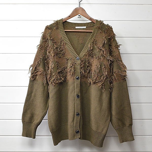 KBF ケービーエフ ジャガードフリンジ カーディガン オーバーサイズ カーキ ニット |