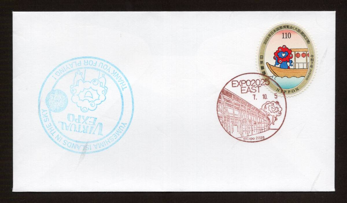 2025年日本国際博覧会(大阪・関西万博)記念カバー[パビリオン当日限定スタンプ/コモンズE.Virtual EXPO]110円貼/EXPO2025EAST/ミャクミャク