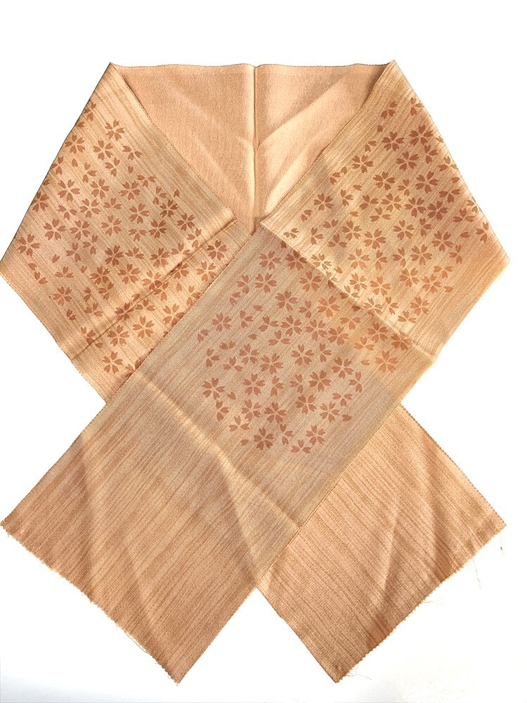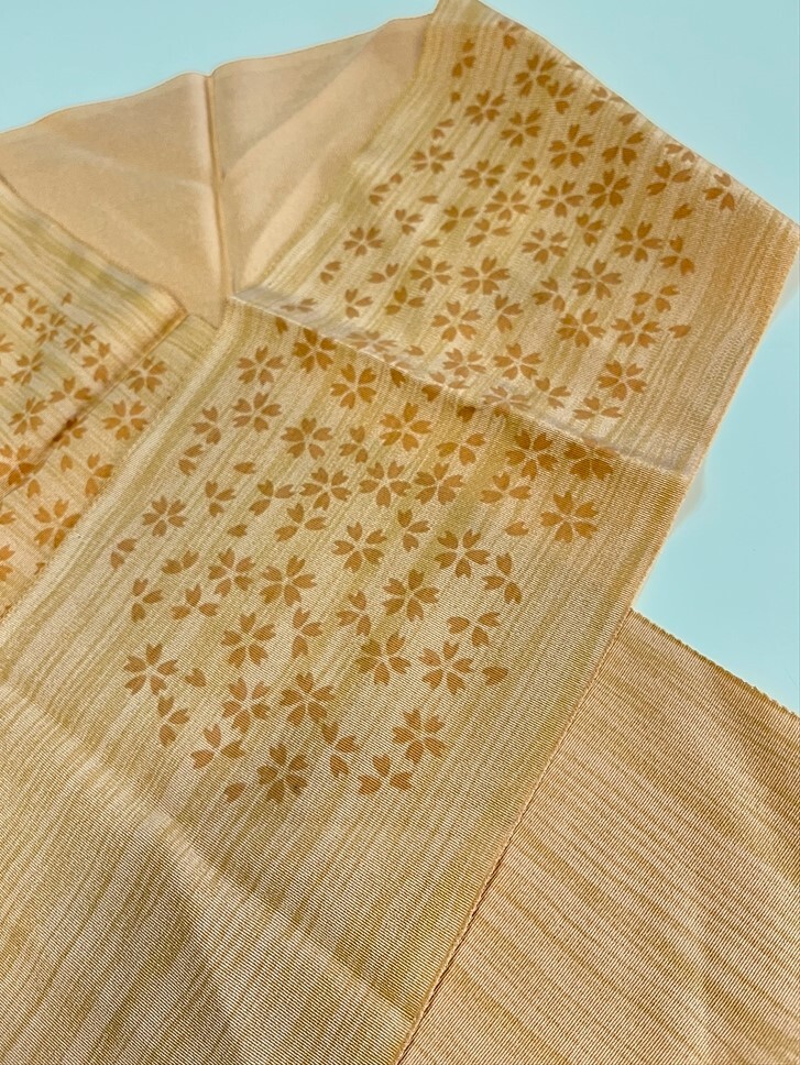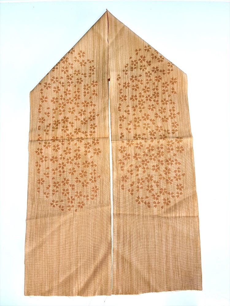 花とら●リサイクル和装小物 半衿 半襟 薄茶ベージュ 桜  リメイク 素材 細工用にも    250920