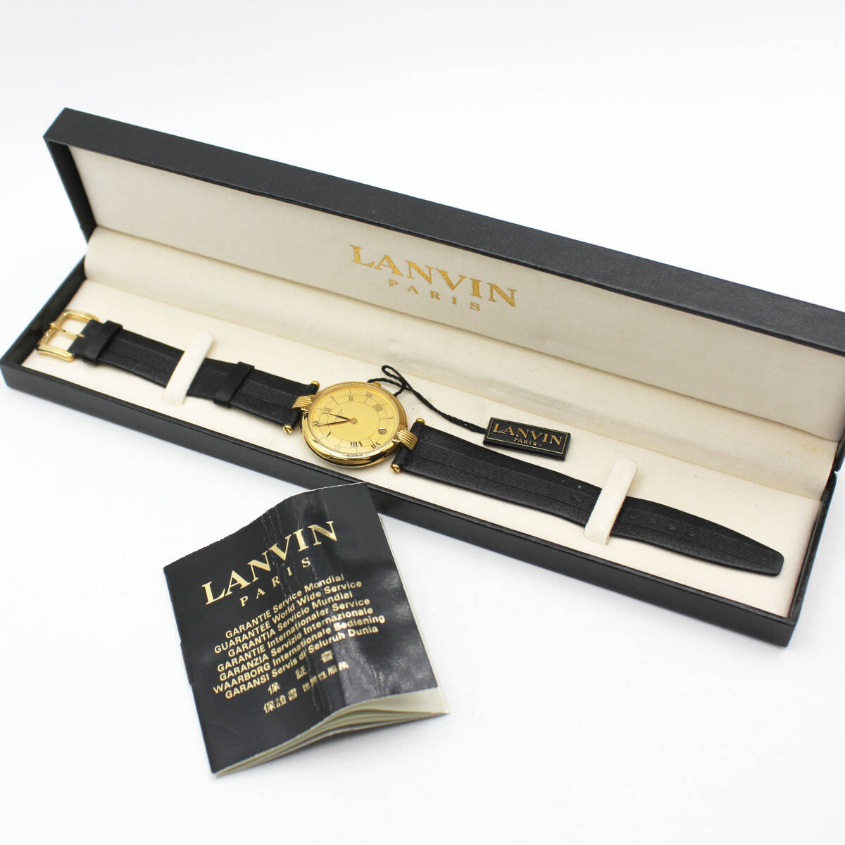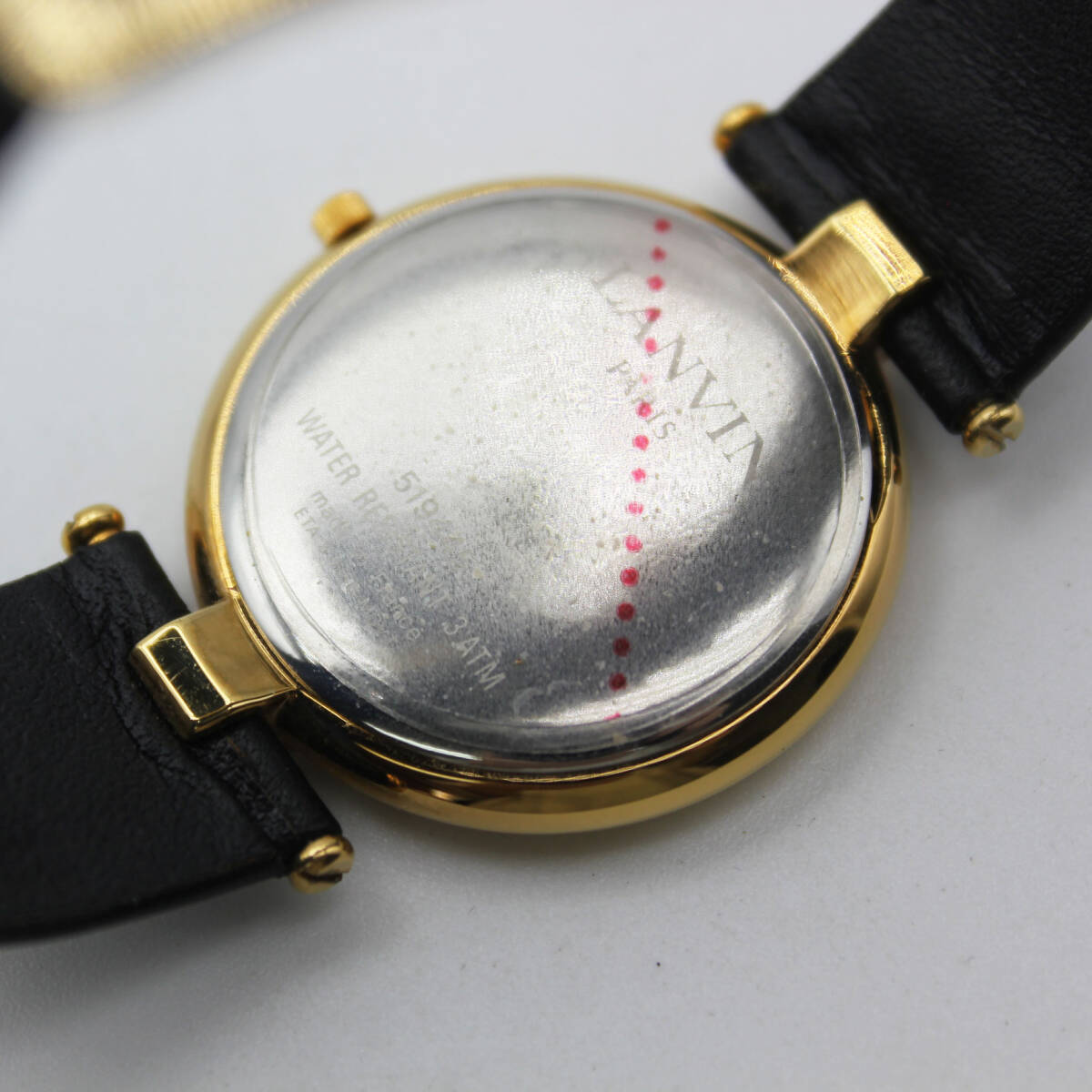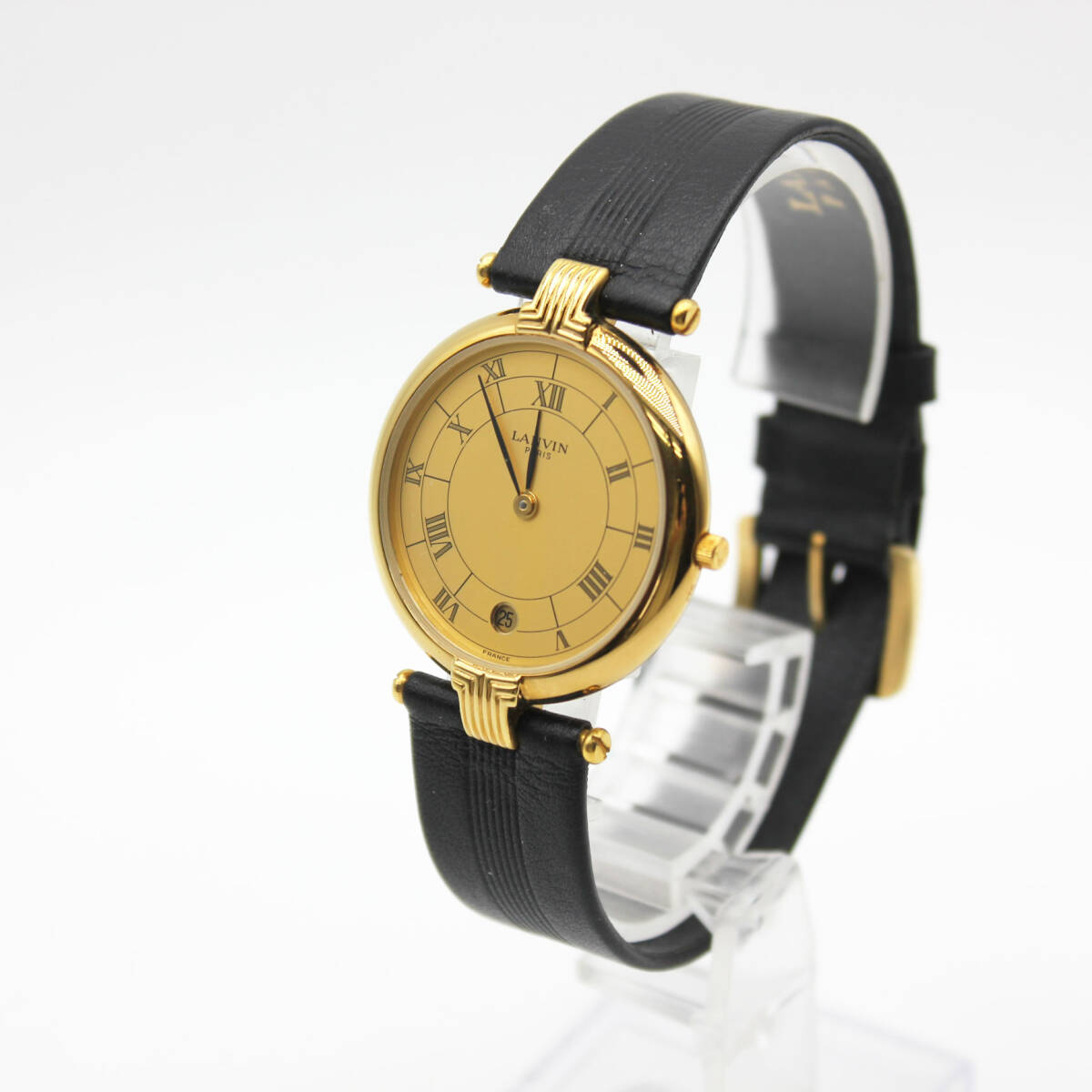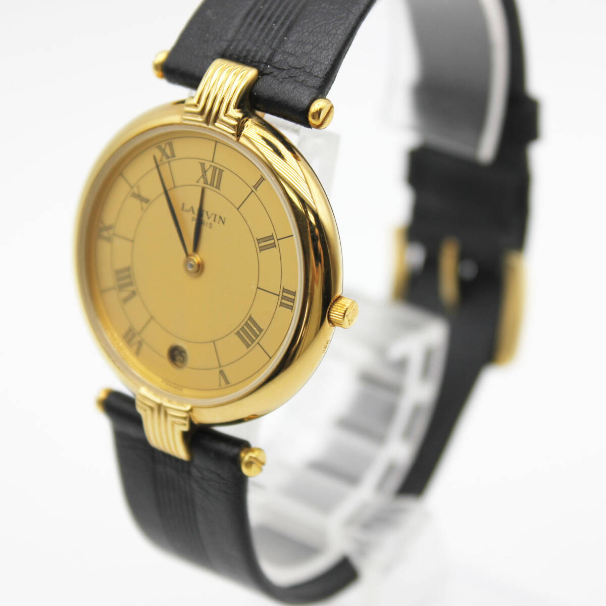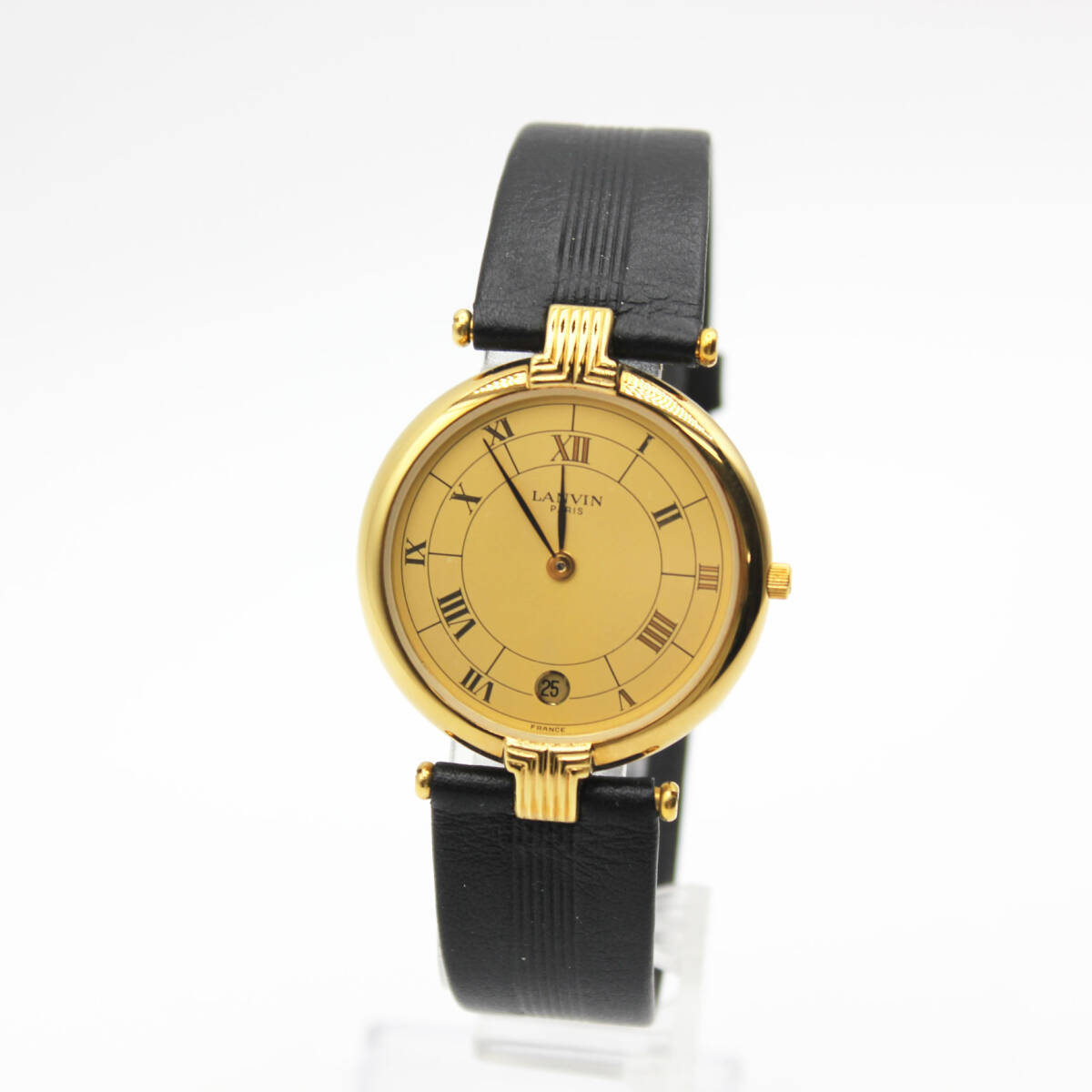 W251007-14 【ケース付き】LANVIN PARIS ランバン 519445 レディース腕時計 クォーツ デイト ジャンク 文字盤ゴールド