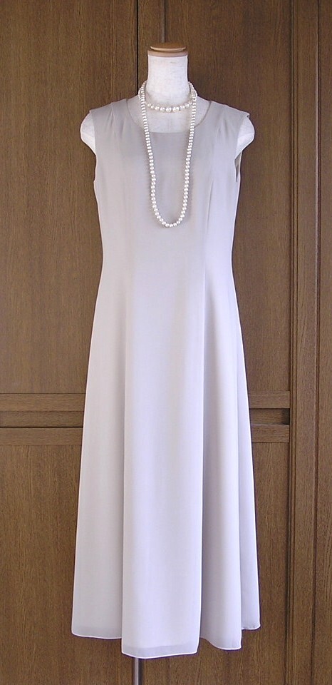 ワンピースはゴールド色のサテン地の裏地にシフォンジョーゼットの表地がのっている感じです。