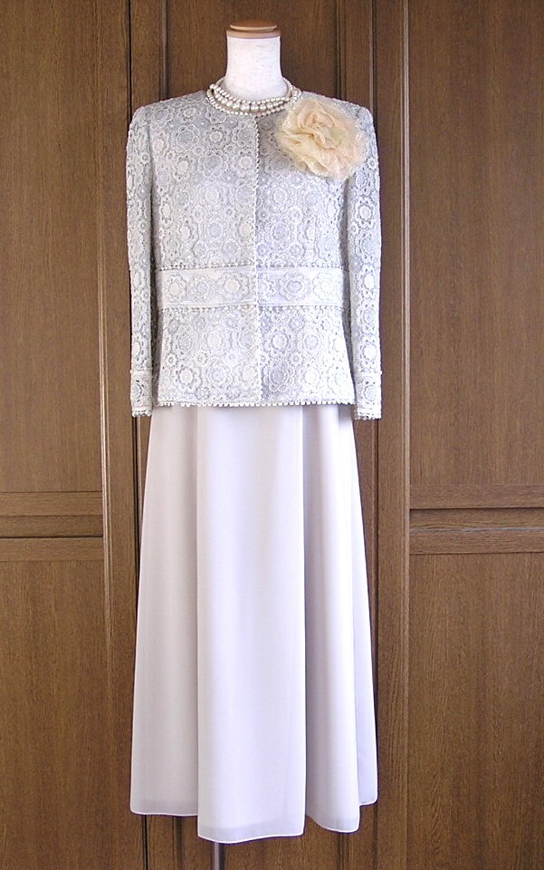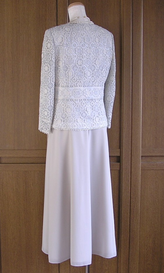 東京ソワール ドルチェ/SOIR DOLCE/ベージュ系/袖なしロングワンピース×花柄レース編みジャケット/9号/発表会 パーティー セレモニー等