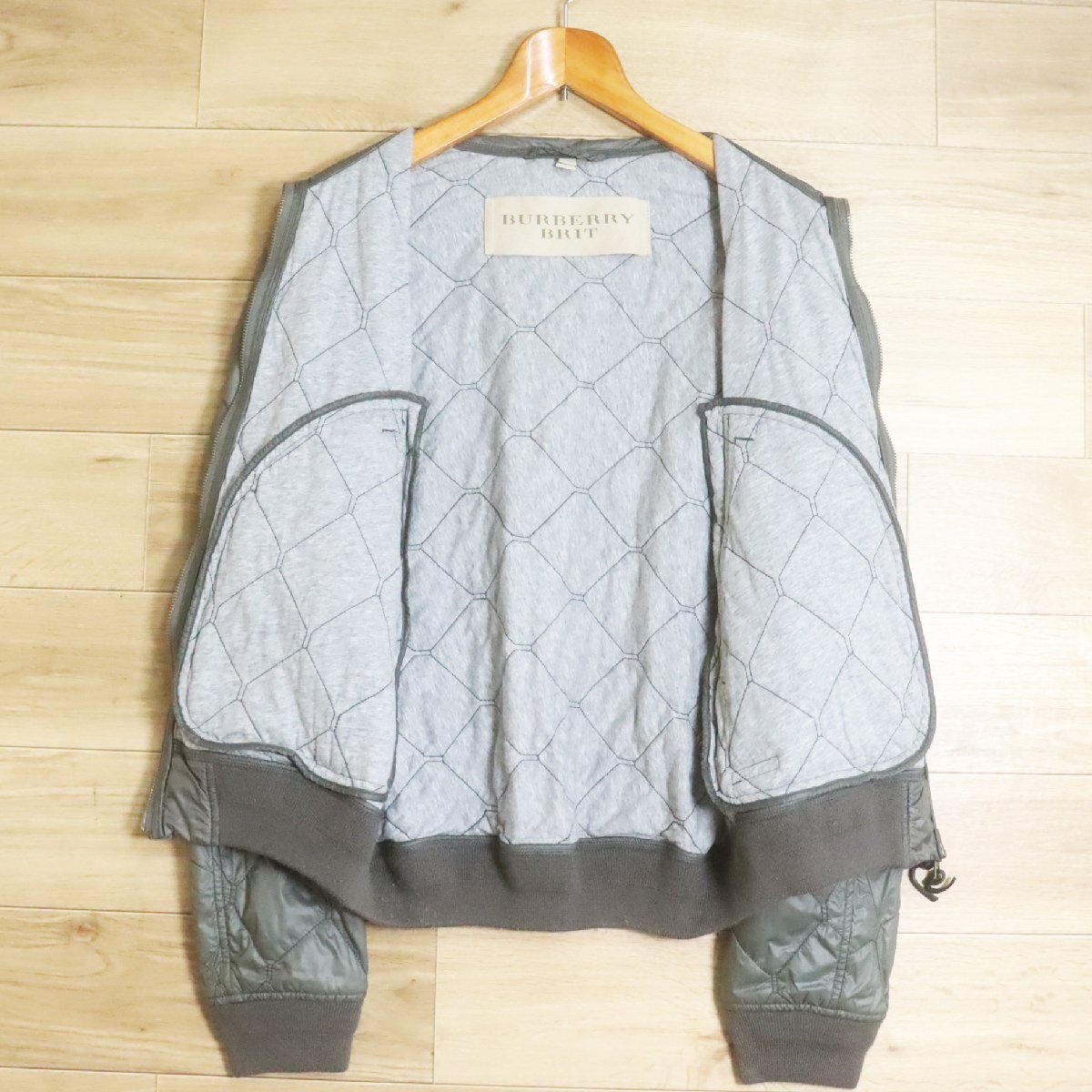 *6R/R7.18-1 BURBERRY BRIT バーバリーブリット キルティングジャケット MA-1 フライトジャケット ダブルジップ L 短丈